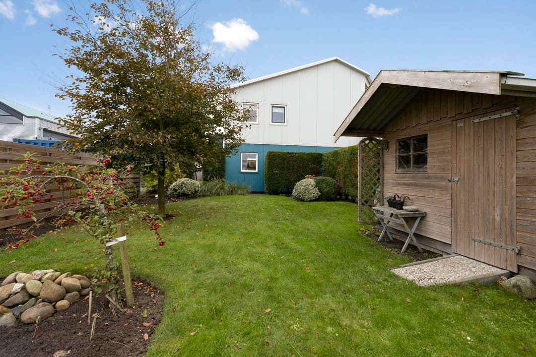 Terrein: Het geheel is gelegen op een perceel eigendomsgrond van 1.672 m2. van Aan de voorzijde van het object bevinden zich een oprit naar de grote hal, drie parkeerplaatsen voor de showroom en de inrit naar het terrein naast en achter het gebouw. Het zijterrein is volledig bestraat en is afsluitbaar met een hek. Het achter terrein is momenteel verdeeld in een bestraat gedeelte en een ruime tuin met een houten berging in twee delen.