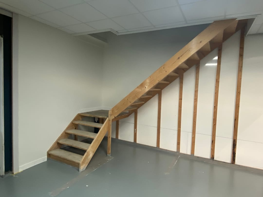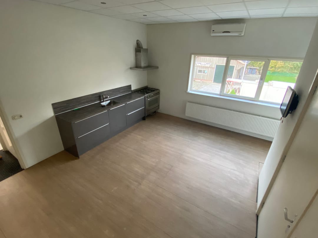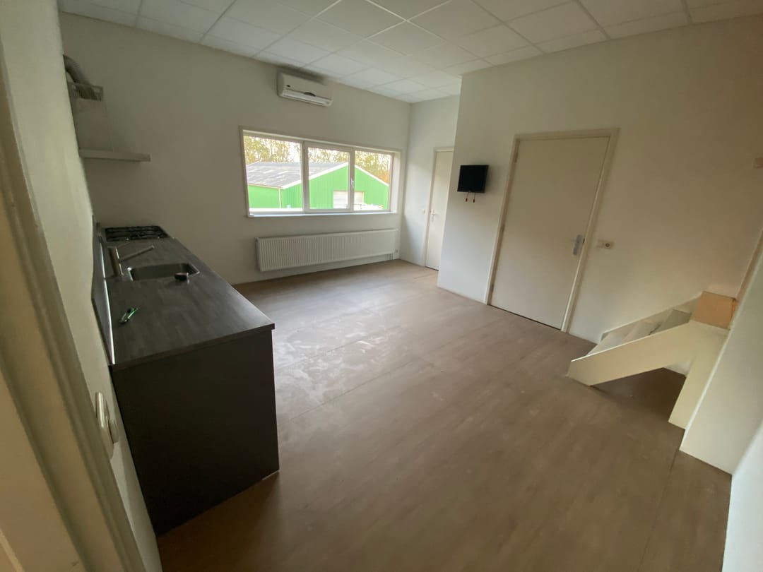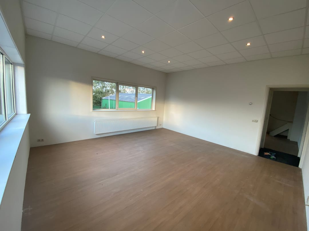 De verdiepingsvloer is bereikbaar door middel van een vaste trap. Op deze verdiepingsvloer zijn drietal ruimtes met keuken, toiletruimte met fontein, en kantoorruimtes. Deze worden verwarmt doormiddel CV.