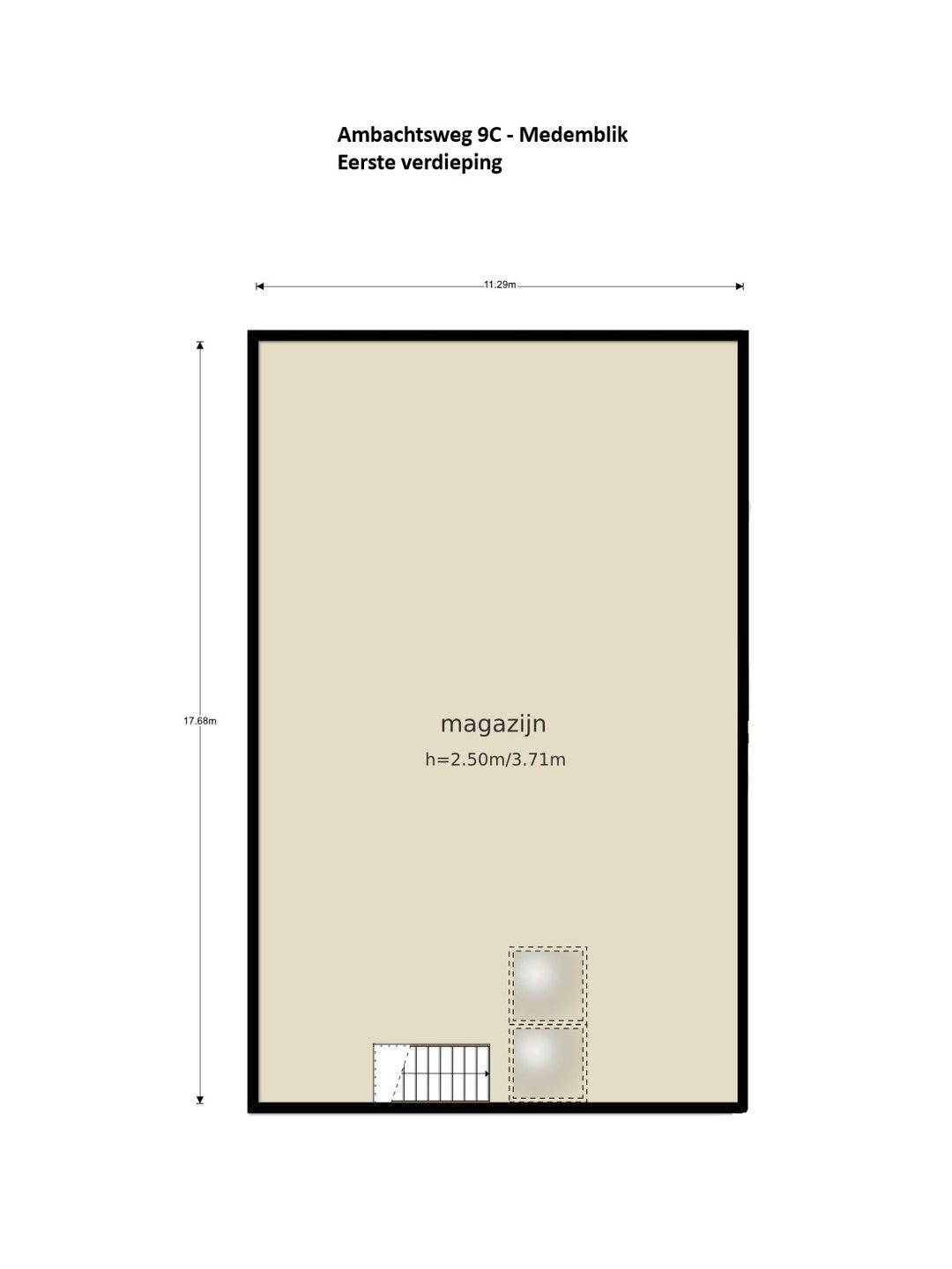 Eerste verdieping via een looptrap bereikbaar; opslagruimte