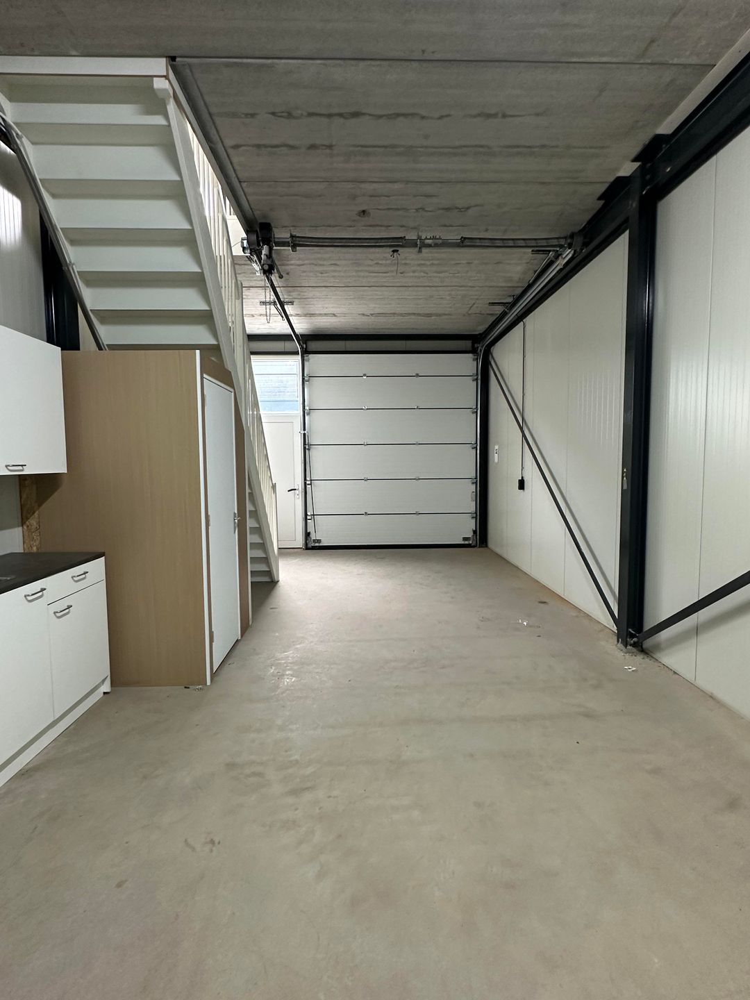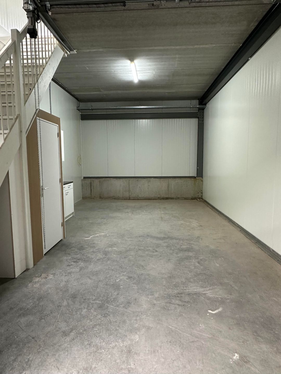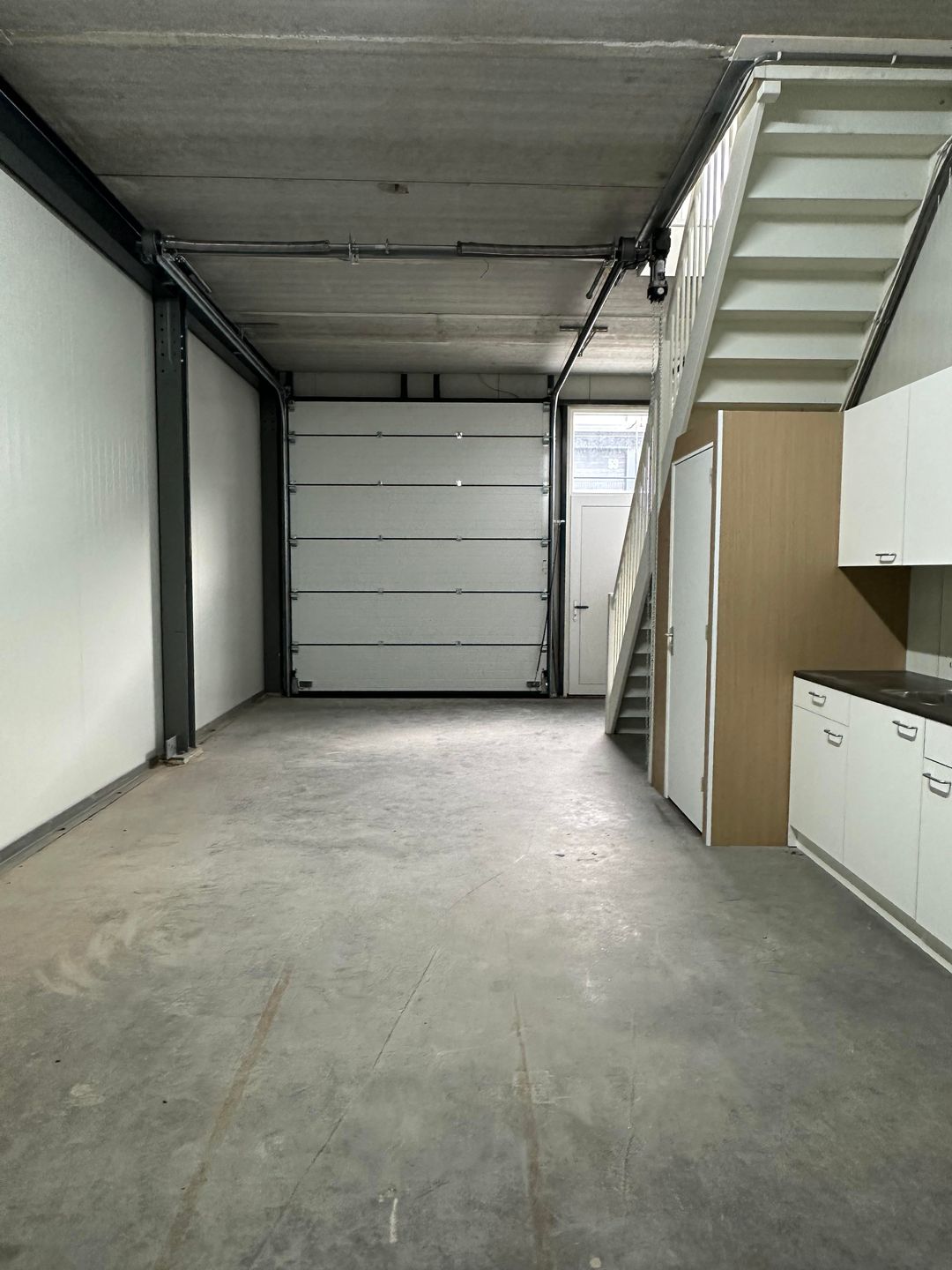 - Moderne voorzieningen: Elektrische overheaddeur (2,90 m x 3,27 m), loopdeur, betonnen vloeren en airconditioning op de verdieping.