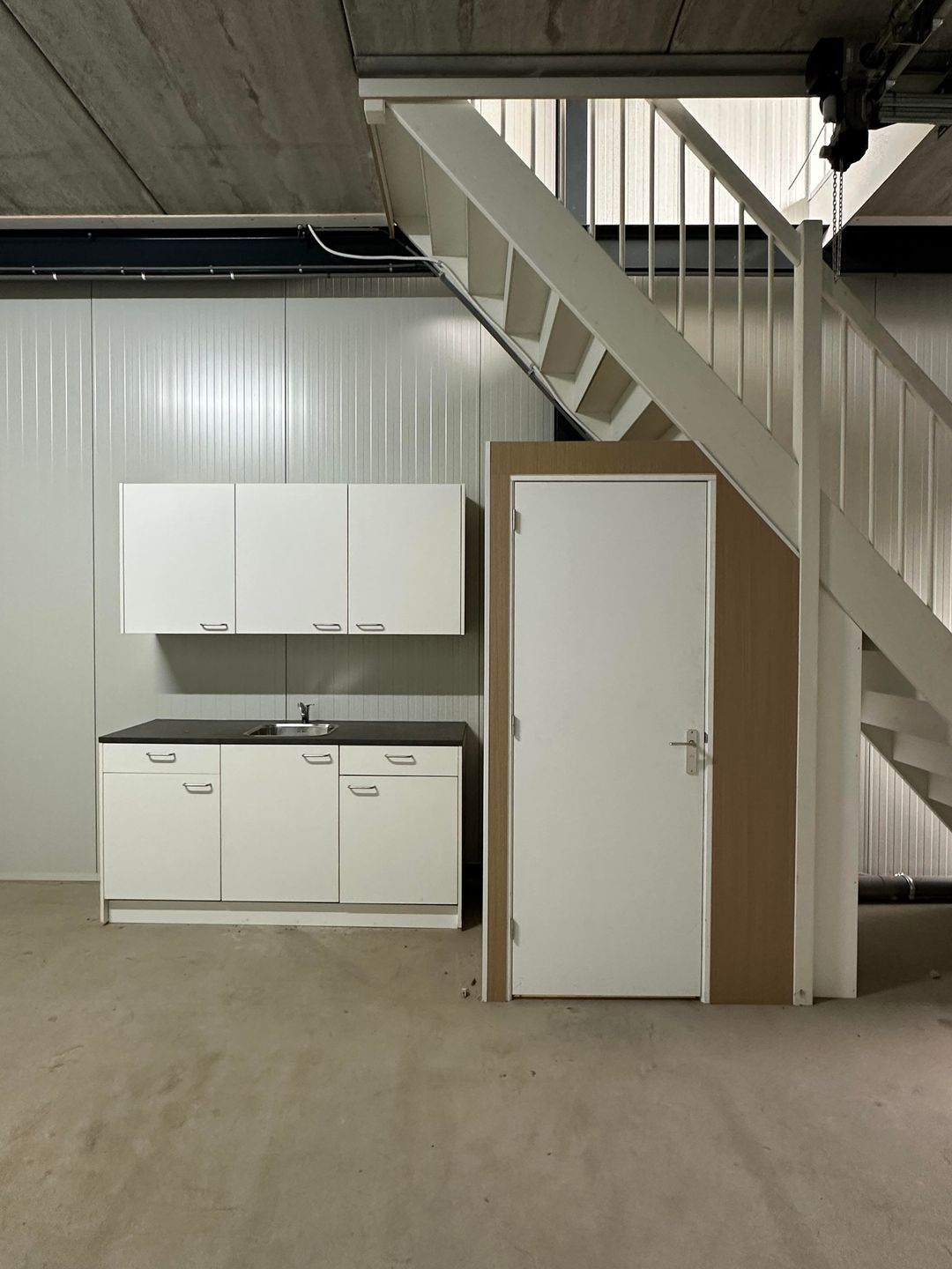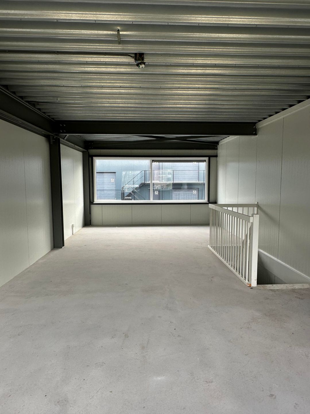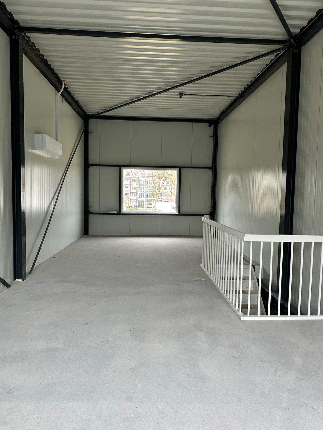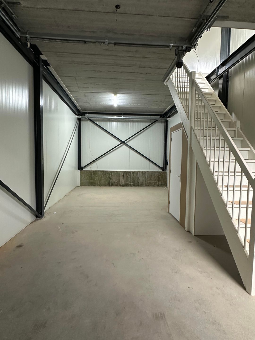 - Moderne voorzieningen: Elektrische overheaddeur (2,90 m x 3,27 m), loopdeur, betonnen vloeren en airconditioning op de verdieping.