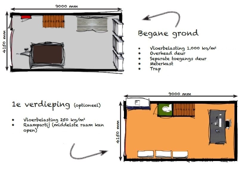 - Vloerbelasting 1.000 kg/m2 voor de begane grondvloer en 250 kg/m2 voor de houten verdiepingsvloer;