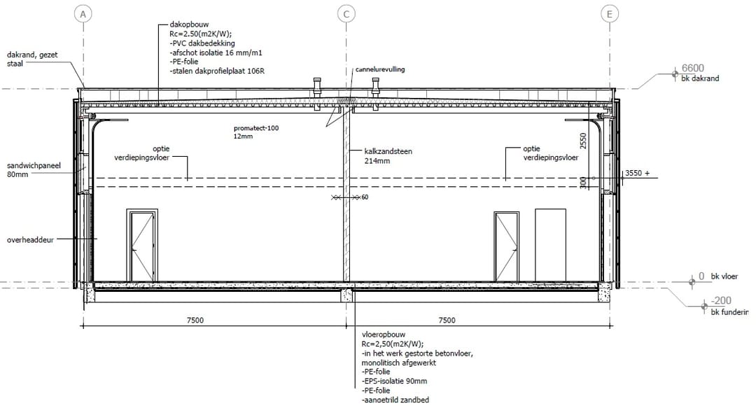 - Overheaddeuren met een hoogte van 3 meter;
