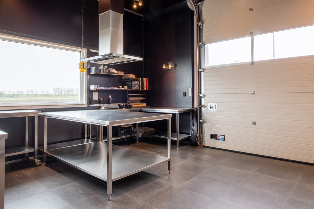 Begane grond: bedrijfsruimte/werkplaats (oppervlakte 68,4m2) met handmatige sectionaaldeur (doorrijhoogte 3.50M) en loopdeur, voorzien van strakke tegelvloer en geïsoleerde wanden en plafonds, grote airconditioningsunit (2023) voor verwarming en koeling, afzuiginstallatie met 3 afzuigunits, meterkast met 12 groepen, 3 aardlekschakelaars en 1 groep voor de zonnepanelen,fonteintje, grote raampartij aan voor- en zijkant met kunststof kozijnen met HR glas, brede stalen trap naar 1e verdieping.