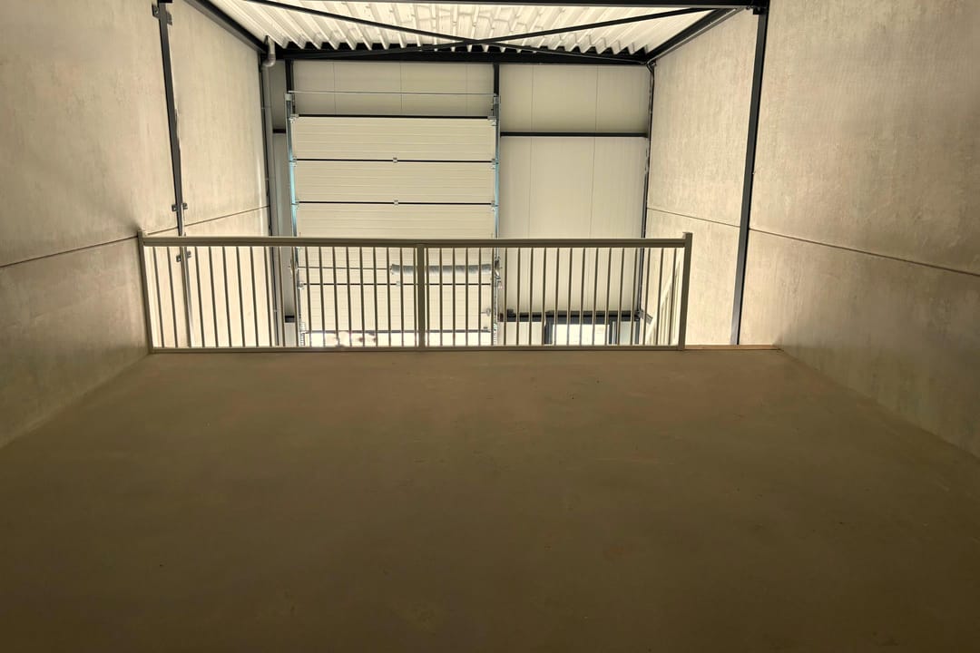 Het betreft een relatief nieuwe ruimte van totaal 118 m2, verdeeld over 75 m2 begane grond en 43 m2 verdieping met vaste trap. De unit is bereikbaar via de eigen voordeur of elektrisch bedienbare overhead-deur.