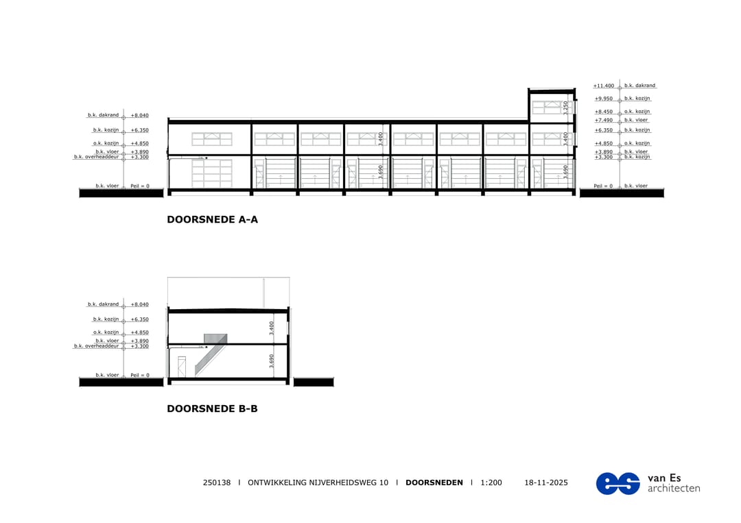 - Vrije hoogte: begane grond ca. 3,70 m / verdieping ca. 3,40 m