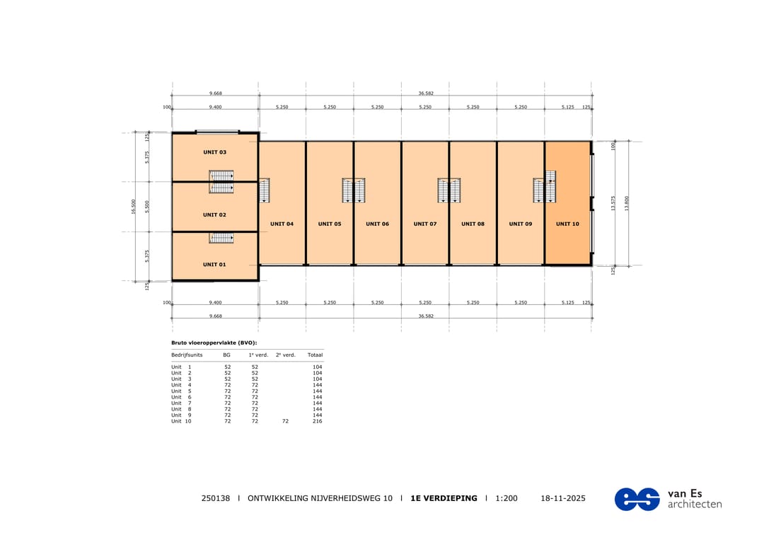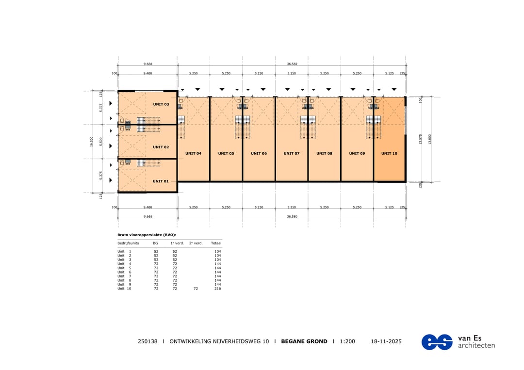 De bedrijfsunits worden gebouwd met oog voor kwaliteit, duurzaamheid en flexibiliteit. Ideaal voor ondernemers of beleggers die willen investeren in een toekomstbestendige bedrijfslocatie. De units variëren in oppervlak van ca. 104 m2 tot ca. 216 m2 BVO en zijn naar wens te combineren of aan te passen.