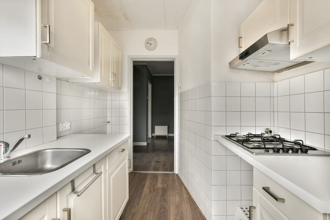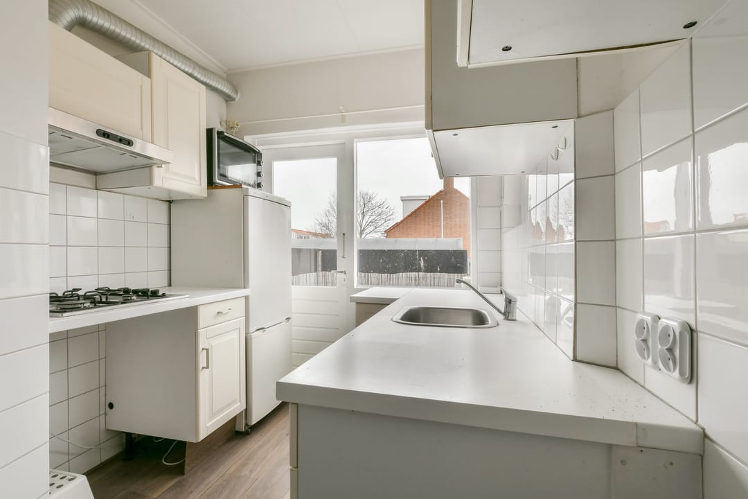 Woonkamer, keuken en aangrenzend zonneterras, en badkamer.