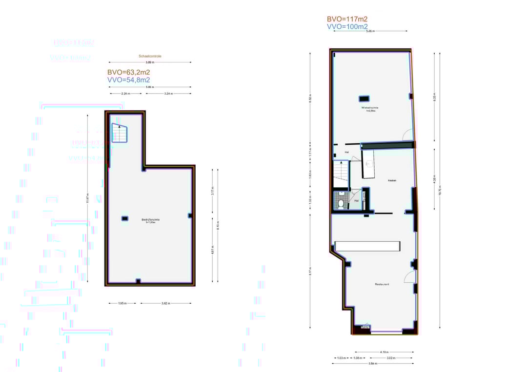 - Combinatie van commerciële ruimten, opslag en bovenruimte;