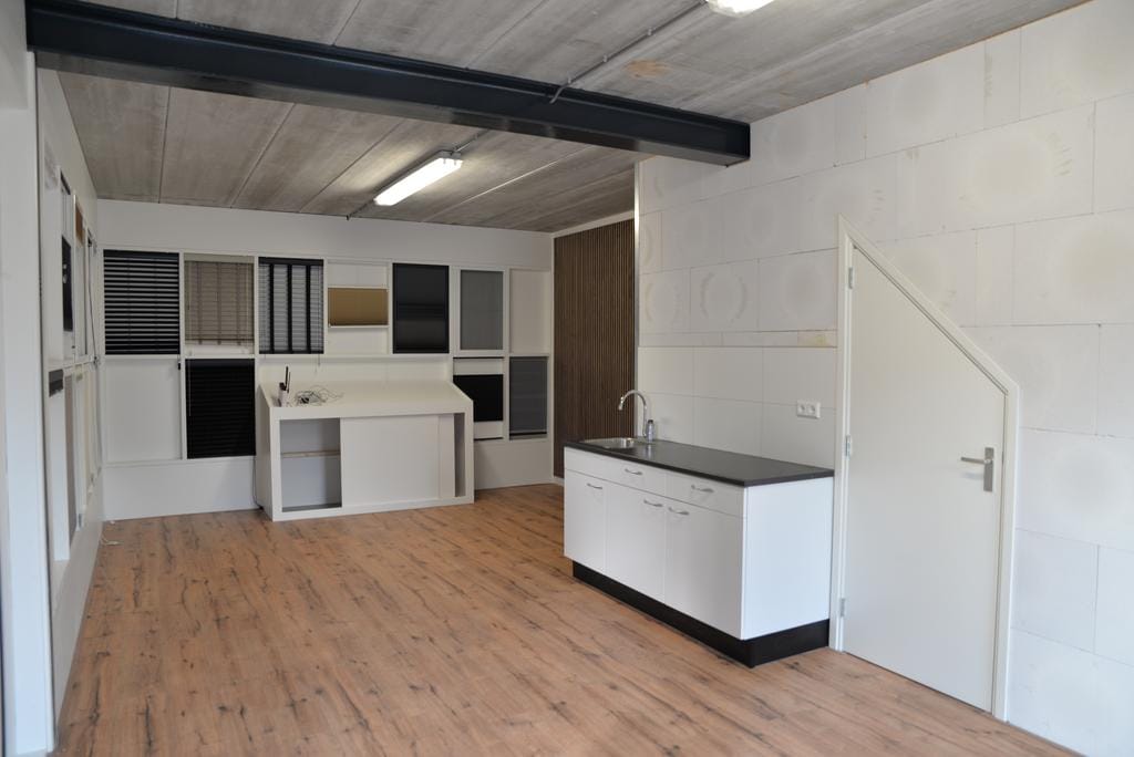 - showroom met keukenblok en toiletruimte;