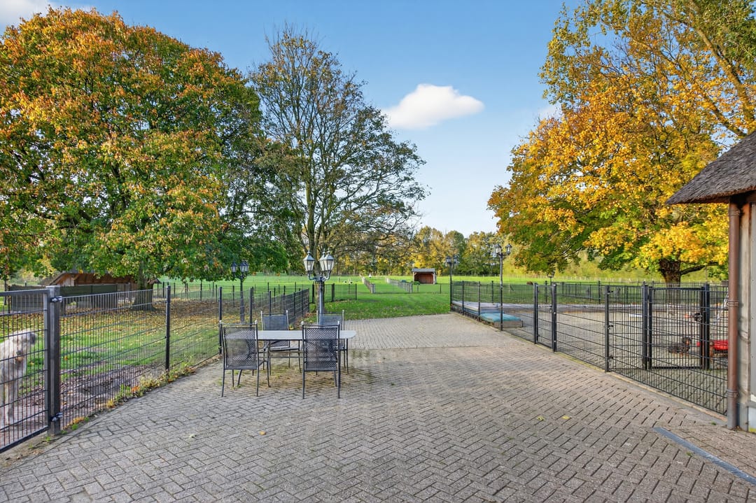Heerlijk ruim is het perceel met een royale oprit. Om de woning heen is gazon, plantenborders, terrassen (met overkapping) en hagen. Liefhebbers van paarden kunnen hier hun hart ophalen met een paardenbak en weilanden.