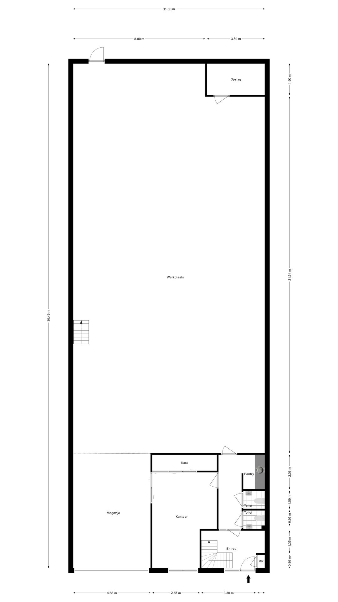 Ceiling height on the office floors is approximately 2.50 meters, while the industrial space has a clear height of around 6.40 meters.