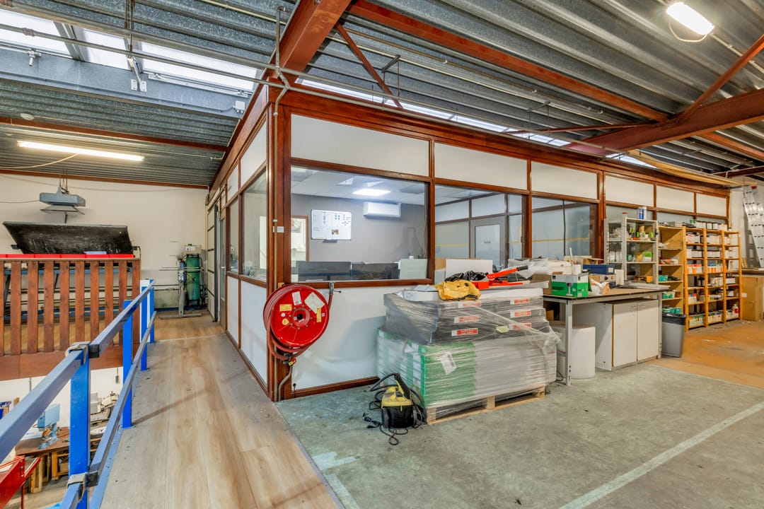 - Air conditioning, mechanical ventilation, rooflights, overhead doors, three-phase electric power, concrete floor, heater, toilet, pantry and built-in fittings