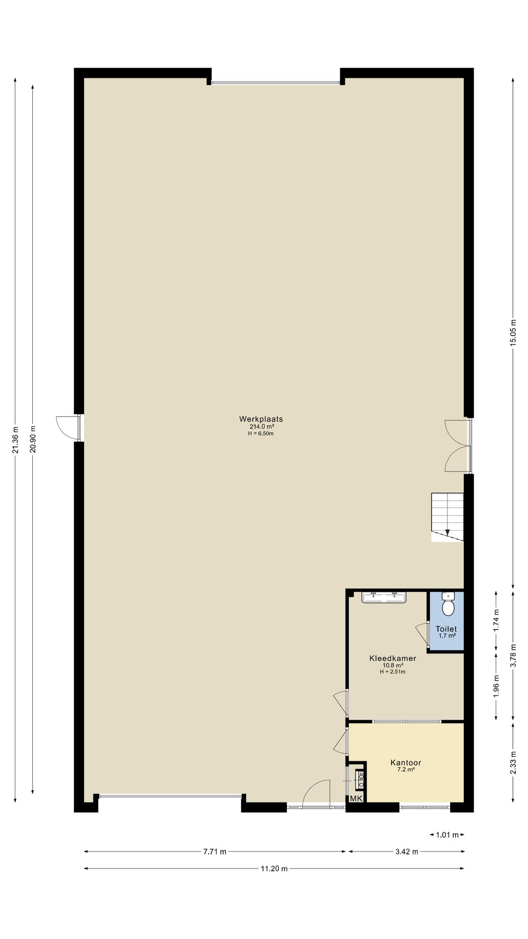 Het bedrijfspand met bedrijfsruimte heeft een totale oppervlakte van circa 468 m² v.v.o. bedrijfsruimte.