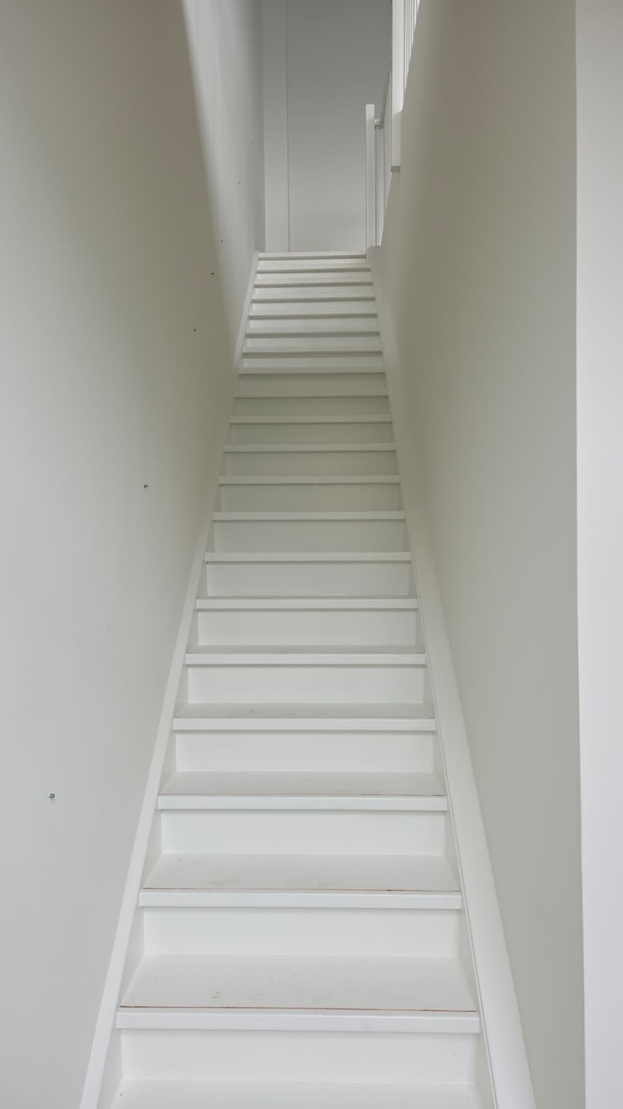 - Dichte vurenhouten verdiepingstrap met balustrades;