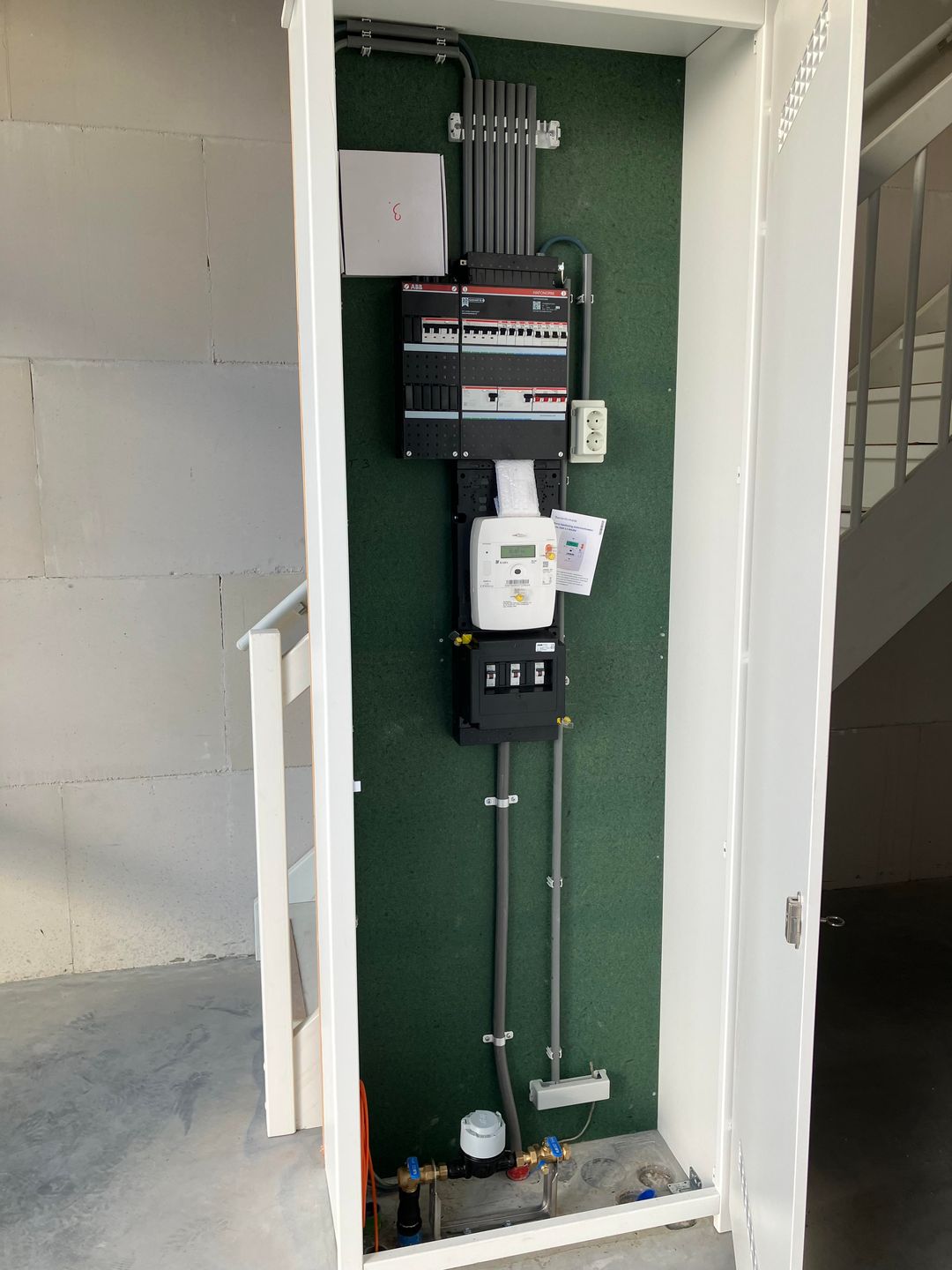 - Meterkast voorzien van meter voor elektra, water en internet;