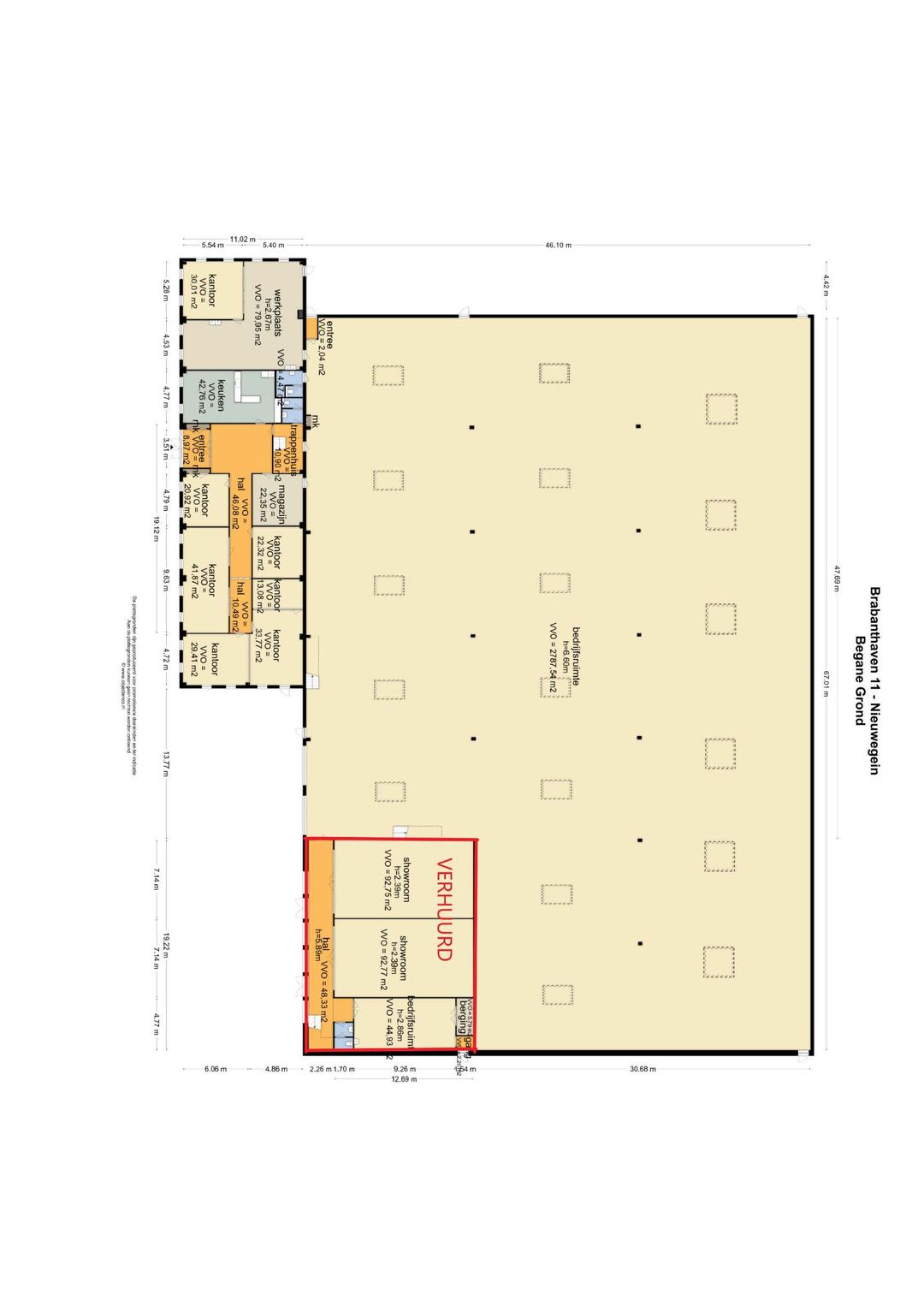 - 2.787,54 m² bedrijfsruimte gelegen op de begane grond;