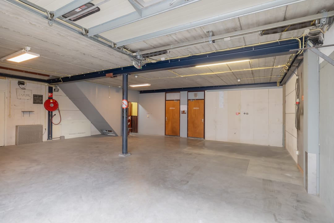 Opzoek naar meer vrije hoogte of heeft u behoefte aan een andere indeling? De verdiepingsvloer en de binnenwanden zijn geen onderdeel van de bouwconstructie en hierdoor kunnen beiden volledig- of desgewenst gedeeltelijk verwijderd worden. Dit betekent dat er een bedrijfsruimte met een vrije hoogte van circa 5,1 meter ontstaat. Om ook gemakkelijk aan de voorzijde te kunnen laden en lossen kunt u overwegen om aan de voorzijde van het pand ook een overheaddeur te (laten) plaatsen.
