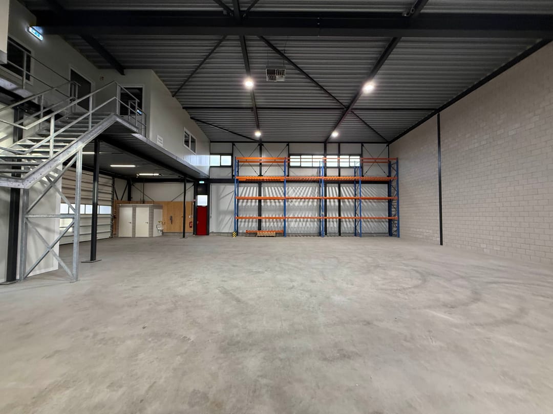 Entree, open bedrijfsruimte, toiletten, trapopgang naar kantoorverdieping.