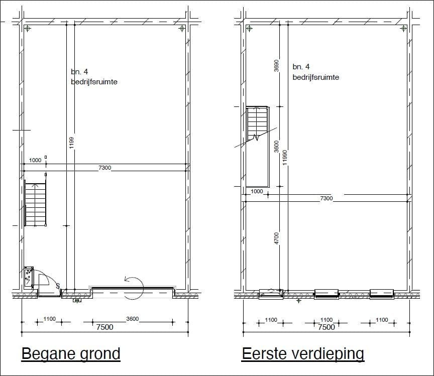 The insulated, electric overhead doors measure 3.6 m1 x 4.0 m1 (w x h). The internal height on the ground floor is 4.5 meters.