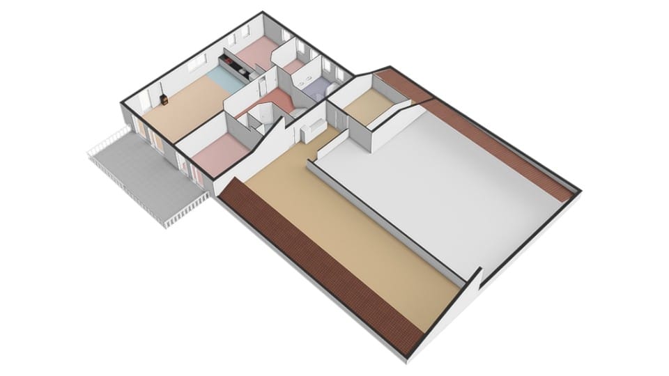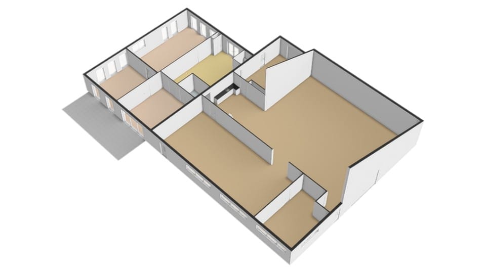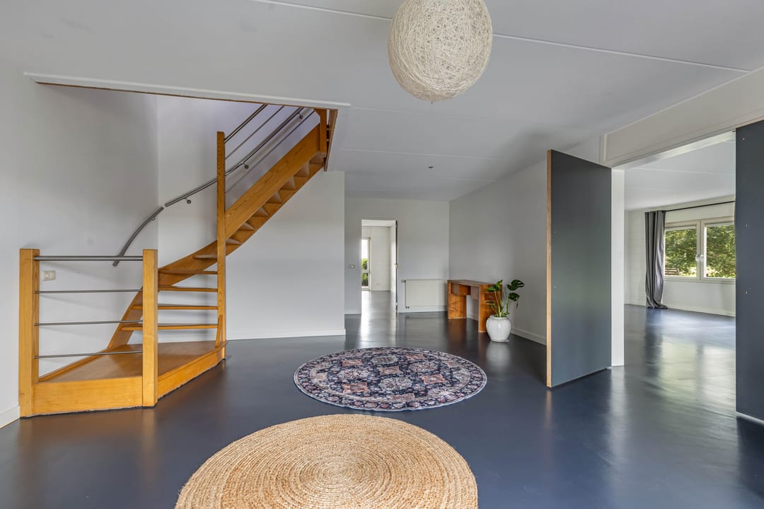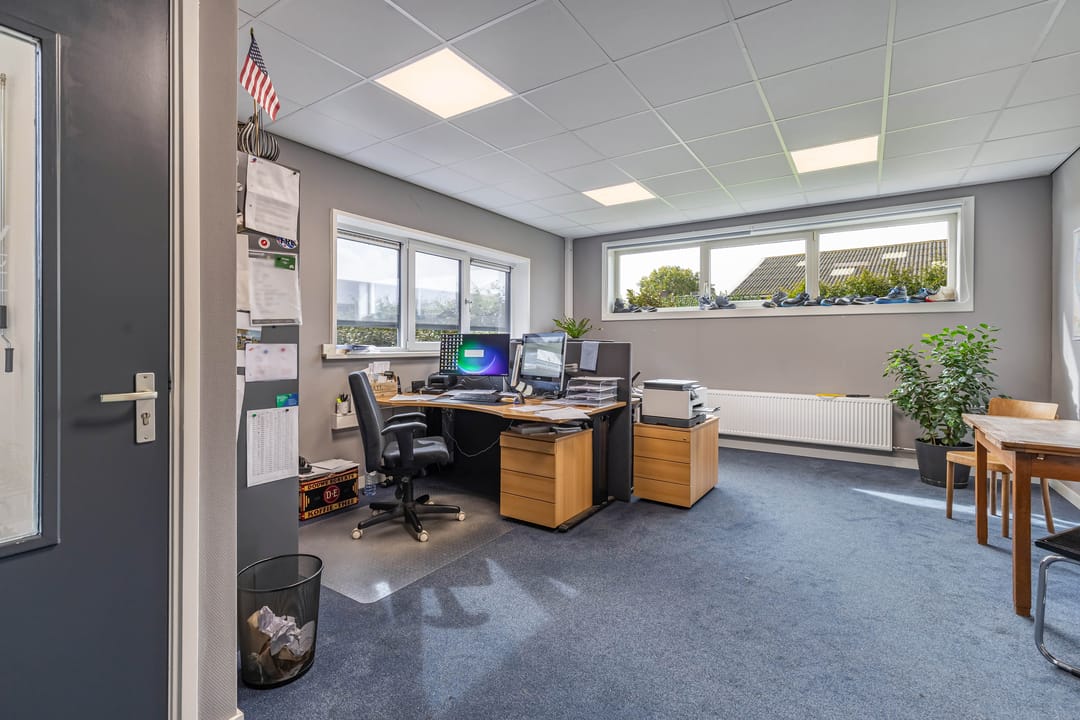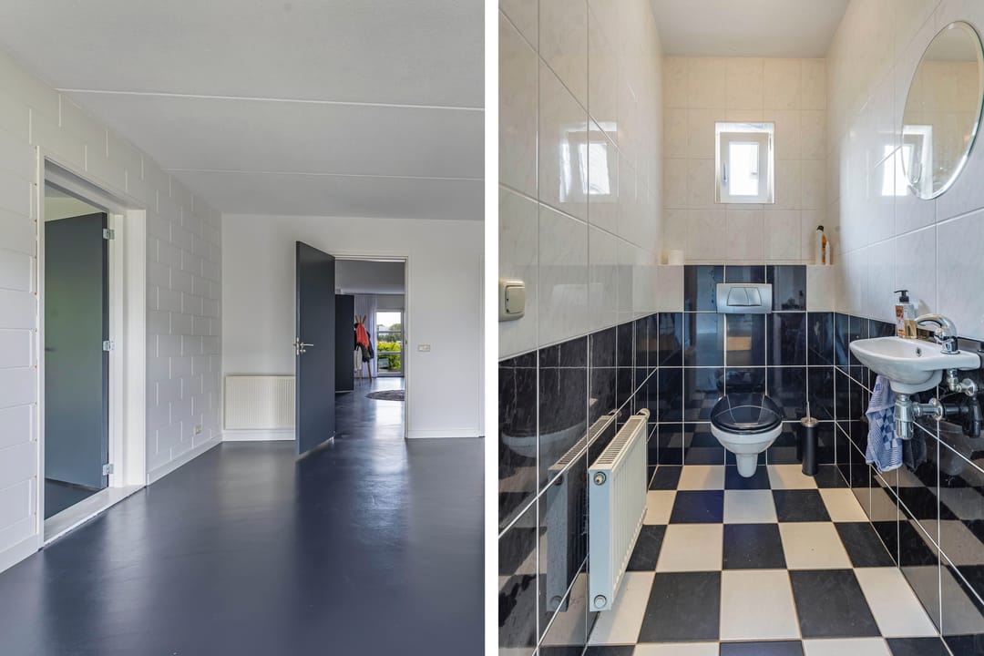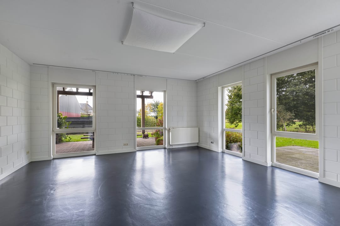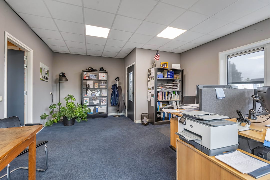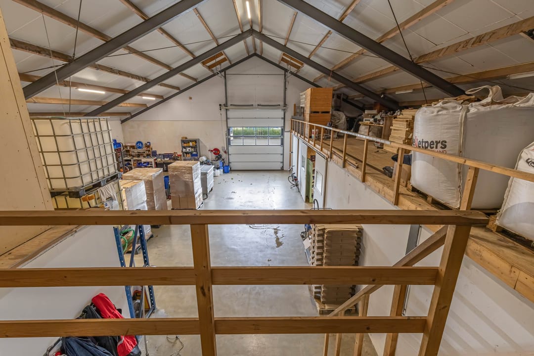Het bedrijfsdeel op de begane grond biedt volop mogelijkheden dankzij drie multifunctionele ruimtes en een riante bedrijfshal met berging, garage en verdiepingsvloer. Een ideale basis voor wie ruimte zoekt voor een onderneming of opslag.