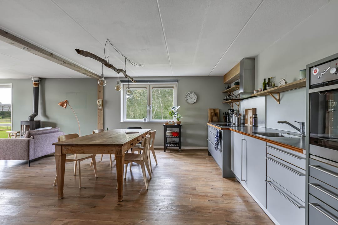 Boven ontvouwt zich een verrassend comfortabele woonruimte. De lichte woonkamer met houtkachel en moderne keuken vormt het hart van de woning, waar binnen en buiten naadloos in elkaar overlopen dankzij het aangrenzende royale balkon met een weids uitzicht over de landerijen. Verder vindt u op deze verdieping drie slaapkamers, een ruime badkamer met ligbad en praktische bergruimte. De tweede verdieping biedt nog eens twee extra slaapkamers en een berging, waardoor er voor het hele gezin of voor logees volop plek is. Dit pand combineert het beste van twee werelden: een groot en veelzijdig bedrijfsoppervlak met een volwaardig en sfeervol woonhuis erboven. De landelijke ligging, de duurzame voorzieningen en de royale afmetingen maken dit tot een zeldzaam aanbod in Friesland.