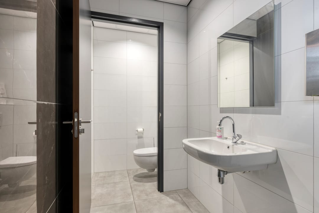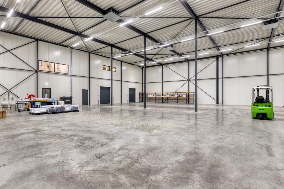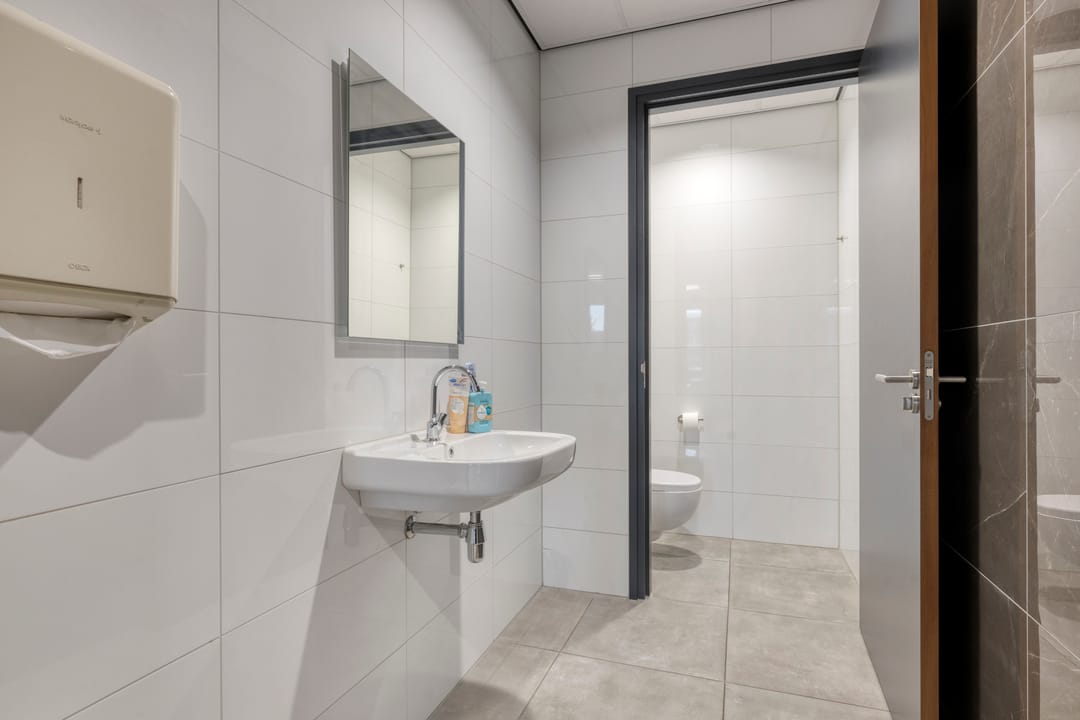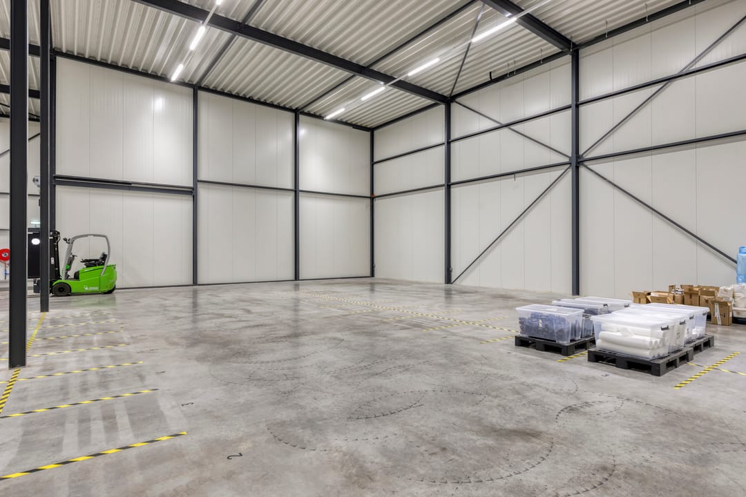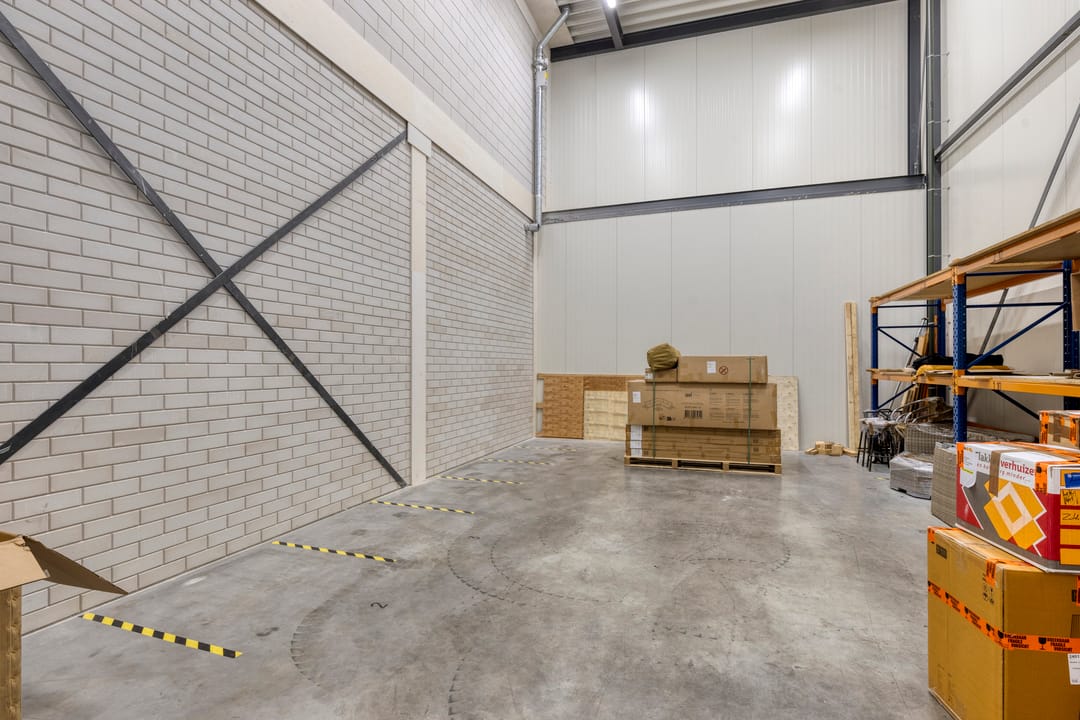 Een hoogwaardige en moderne bedrijfsruimte met kantoorvoorzieningen, gelegen op het bedrijventerrein ten Zuiden van Nijkerk. Het bedrijfscomplex is gerealiseerd in 2023 en beschikt over een totaal vloeroppervlak van circa 1.151 m² v.v.o., verdeeld over magazijnruimtes, kantoorruimtes, kleine pantry/keuken, 2 toiletgroepen, een doucheruimte, een luxe keuken/kantine voorzien van alle apparatuur.
