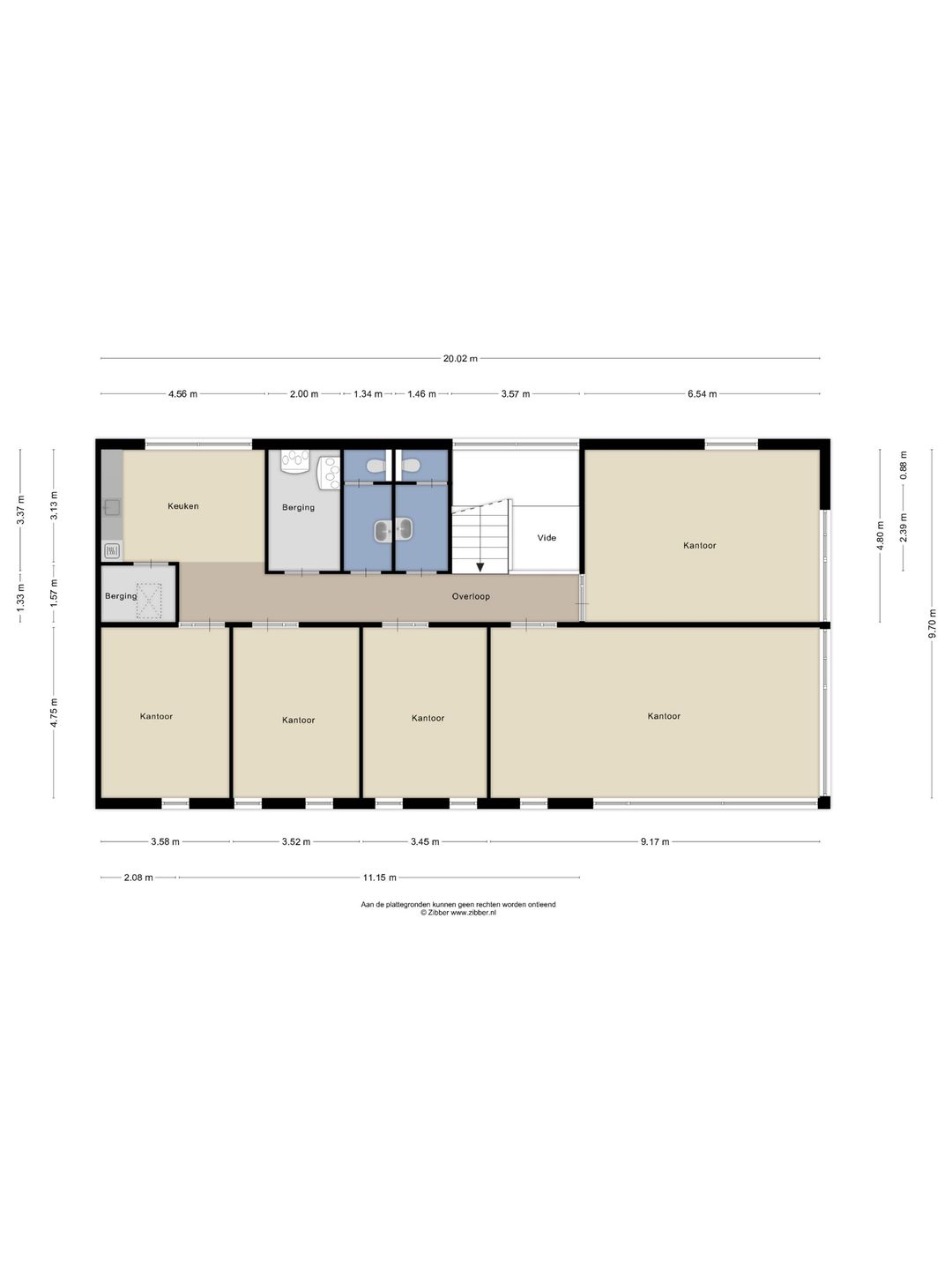 Het totale object is 1.152 m² en als volgt verdeeld: