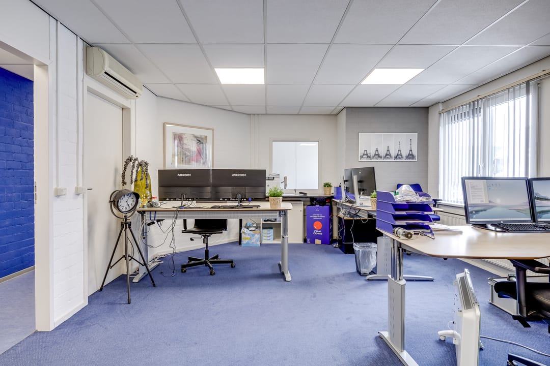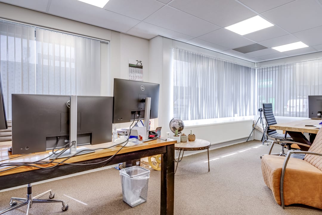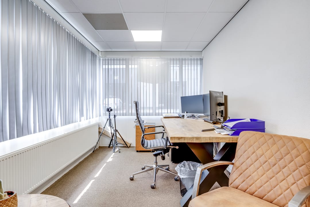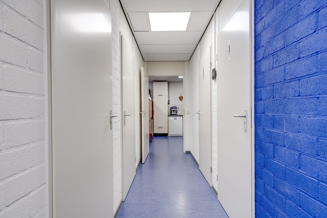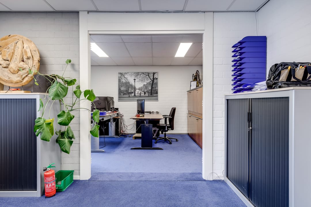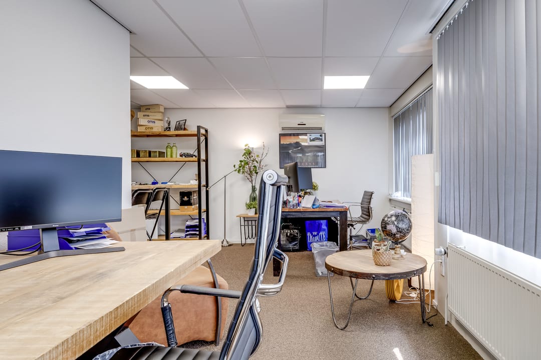 Via een centrale hal zijn de kantoorruimtes aan de voorzijde van het pand bereikbaar. De kantoorruimte is verdeeld over vier separate kantoorkamers. Een van de ruimtes is voorzien van een pantry met koelkast en vrijstaande vaatwasser. De kantoorruimtes zijn voorzien van vloerbekleding, kabelgoten met data- en elektrapunten, een systeemplafond, cv-installatie met radiatoren en koeling middels airconditioning. Achter de kantoorruimten bevindt zich de bedrijfsruimte.
