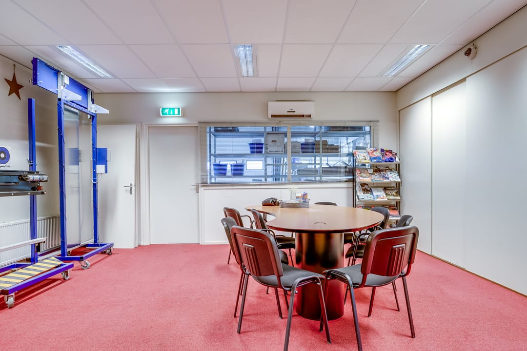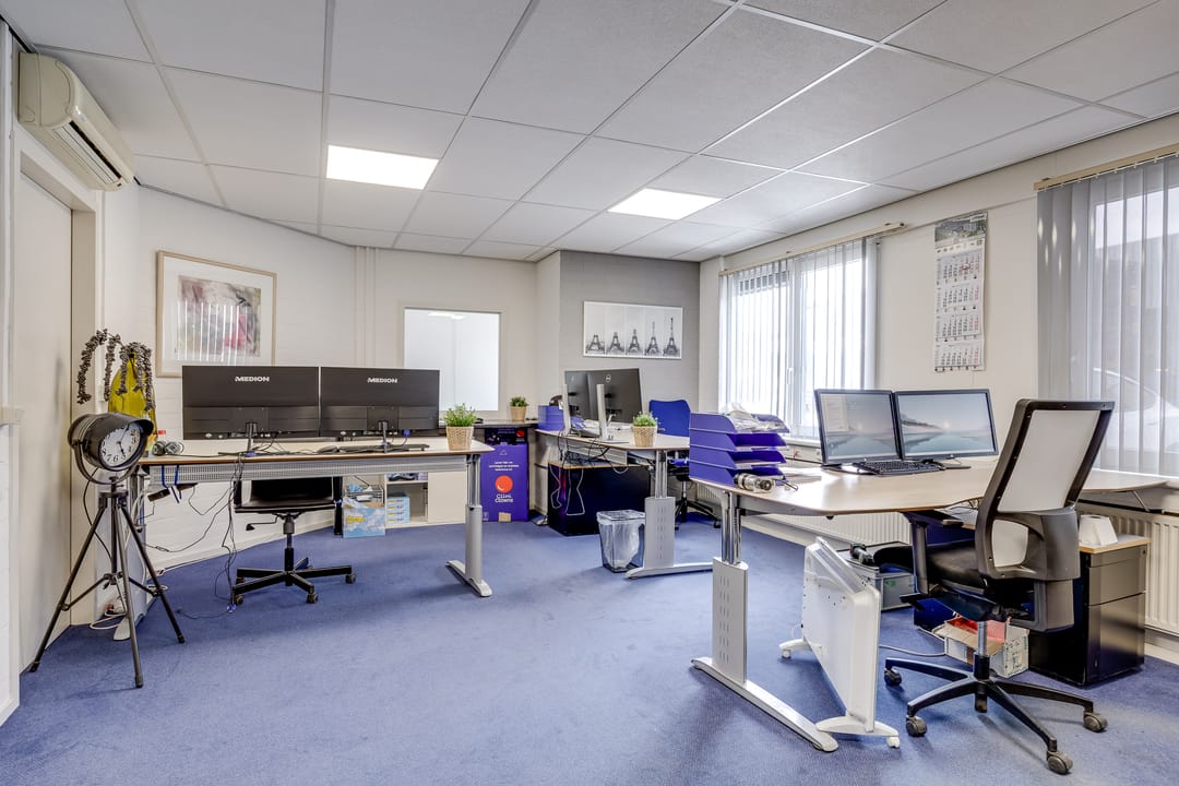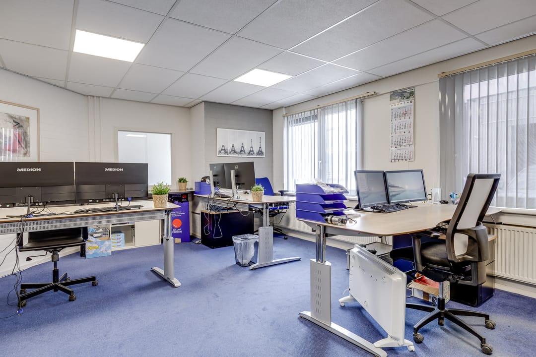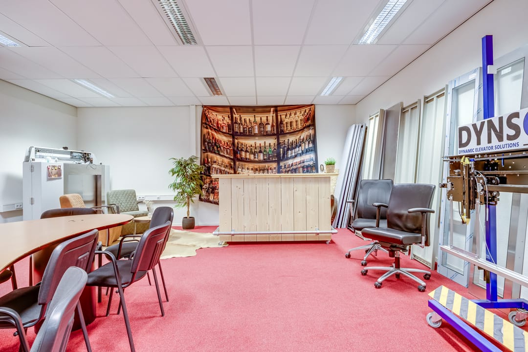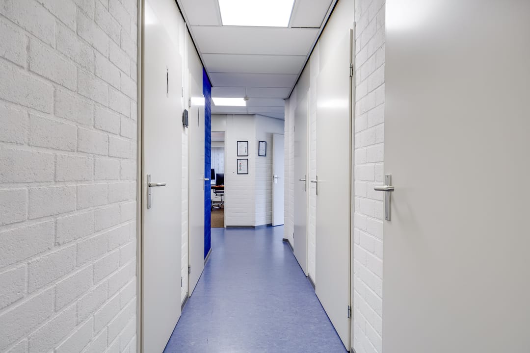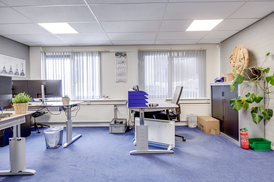 Via een centrale hal zijn de kantoorruimtes aan de voorzijde van het pand bereikbaar. De kantoorruimte is verdeeld over vier separate kantoorkamers. Een van de ruimtes is voorzien van een pantry met koelkast en vrijstaande vaatwasser. De kantoorruimtes zijn voorzien van vloerbekleding, kabelgoten met data- en elektrapunten, een systeemplafond, cv-installatie met radiatoren en koeling middels airconditioning. Achter de kantoorruimten bevindt zich de bedrijfsruimte.