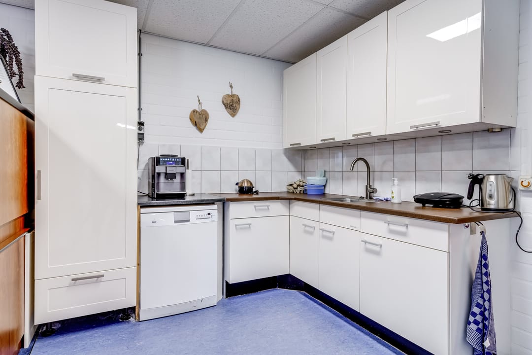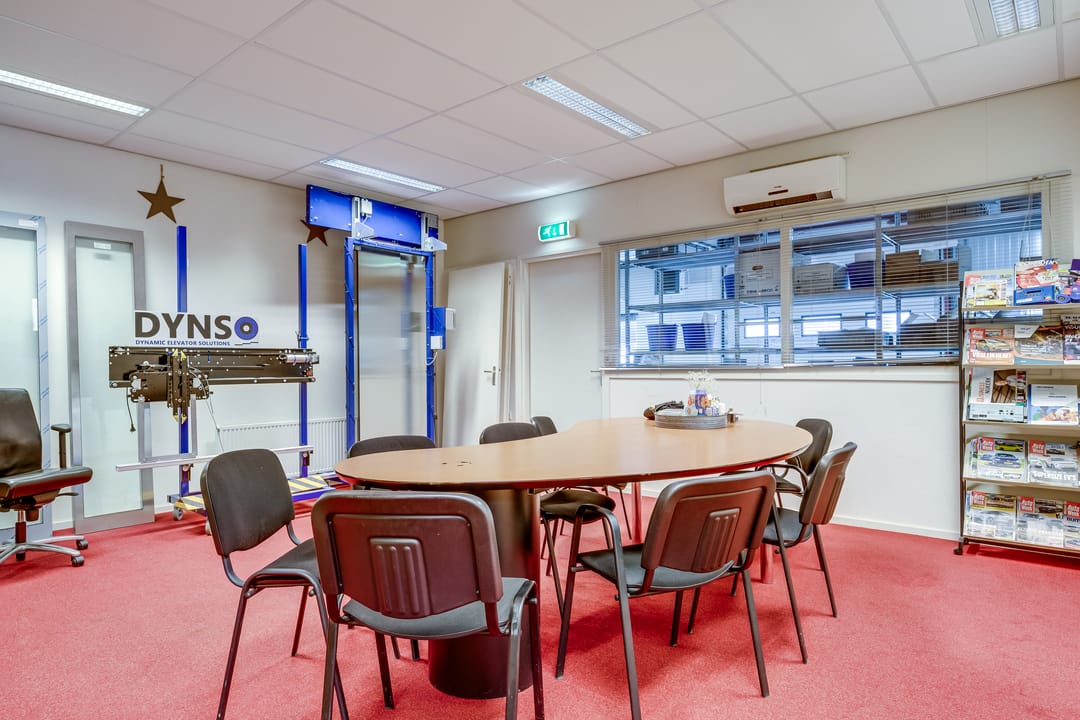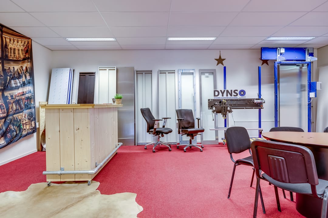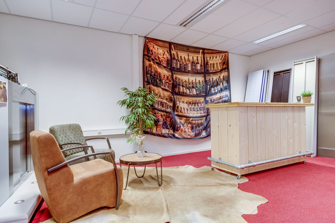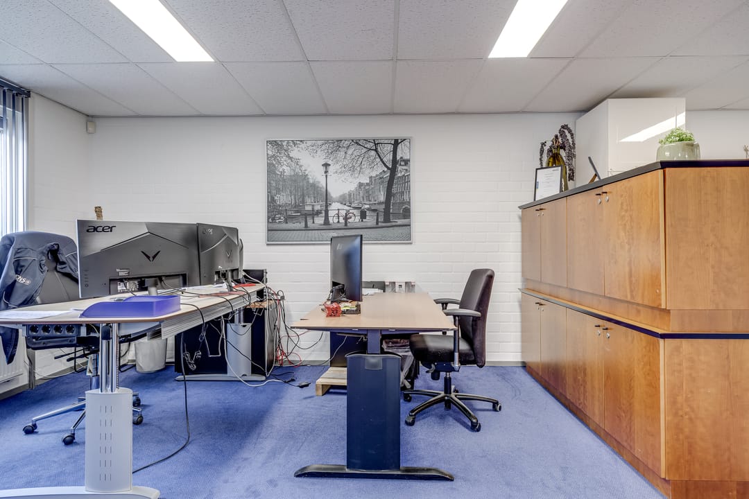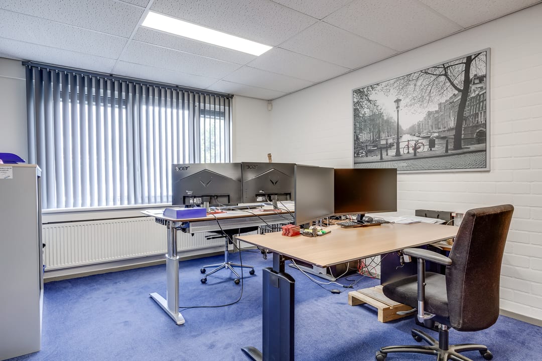 Via een centrale hal zijn de kantoorruimtes aan de voorzijde van het pand bereikbaar. De kantoorruimte is verdeeld over vier separate kantoorkamers. Een van de ruimtes is voorzien van een pantry met koelkast en vrijstaande vaatwasser. De kantoorruimtes zijn voorzien van vloerbekleding, kabelgoten met data- en elektrapunten, een systeemplafond, cv-installatie met radiatoren en koeling middels airconditioning. Achter de kantoorruimten bevindt zich de bedrijfsruimte.