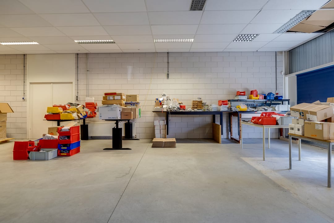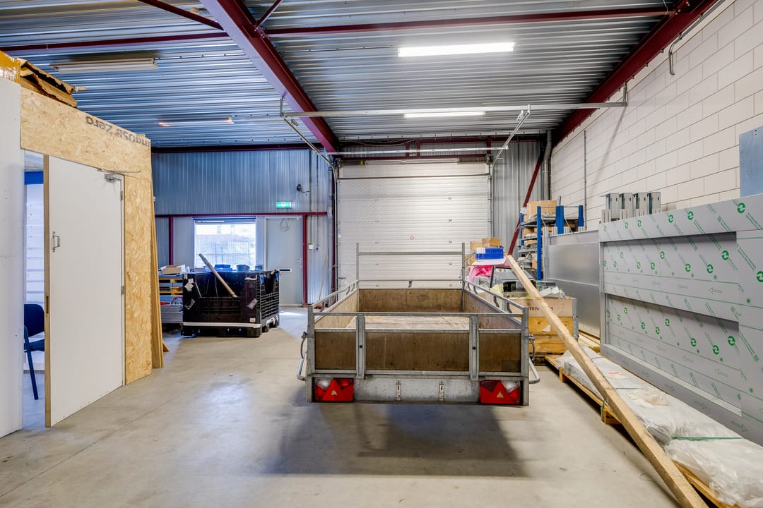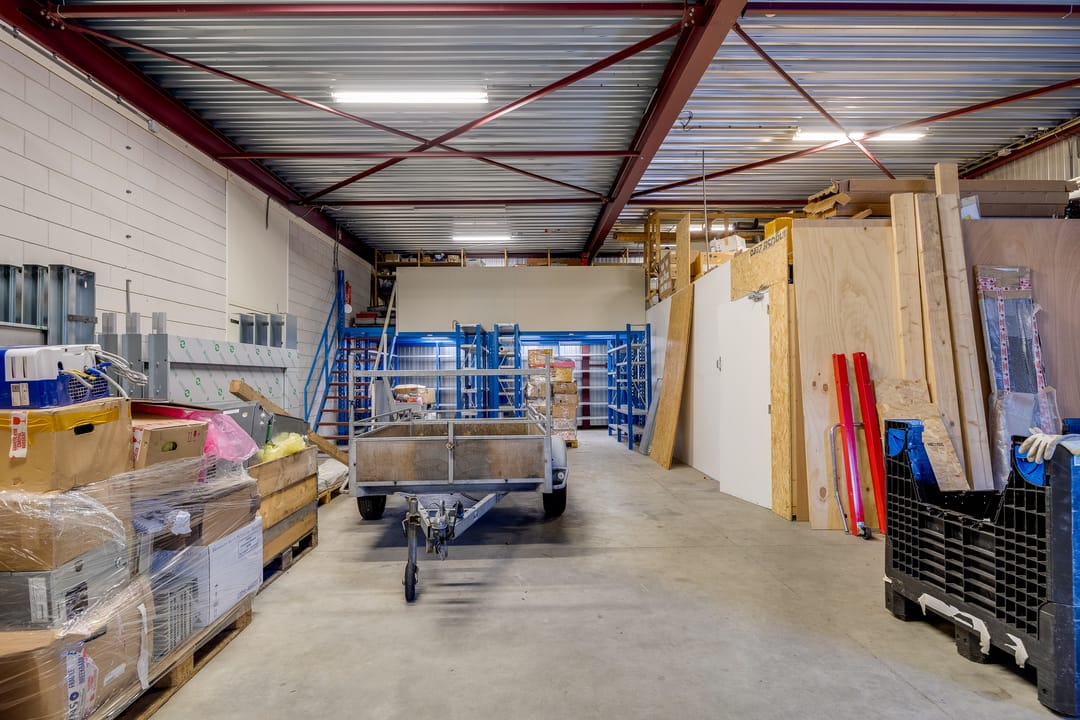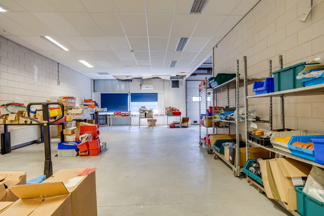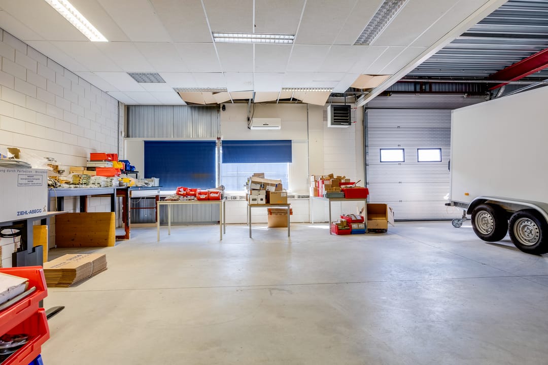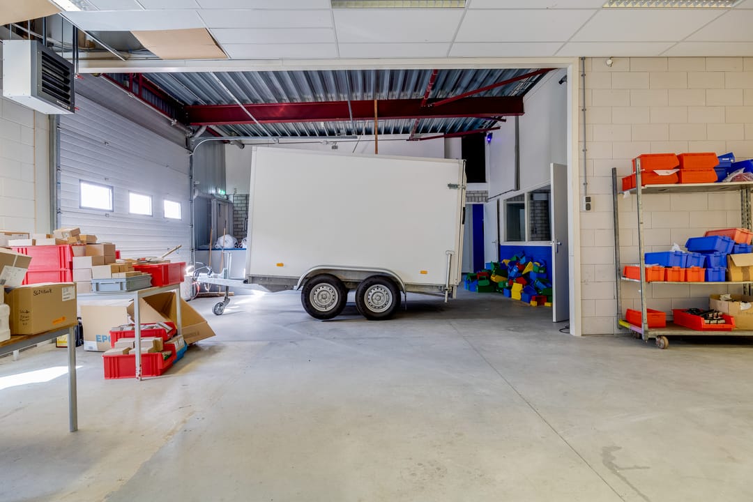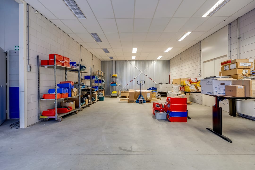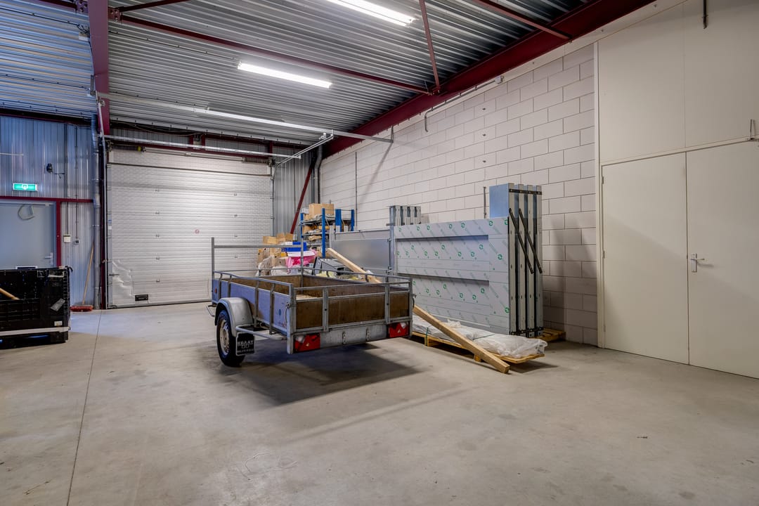 De bedrijfsruimte is voorzien van een betonvloer, twee overheaddeuren, meerdere loopdeuren, verlichting en elektrapunten. Verwarming is mogelijk middels een cv-installatie i.c.m. gasheaters. De entresolvloer aan de achterzijde van het pand is bereikbaar via een vaste trap. De bedrijfsruimte is uitstekend te gebruiken als opslagruimte of productie.