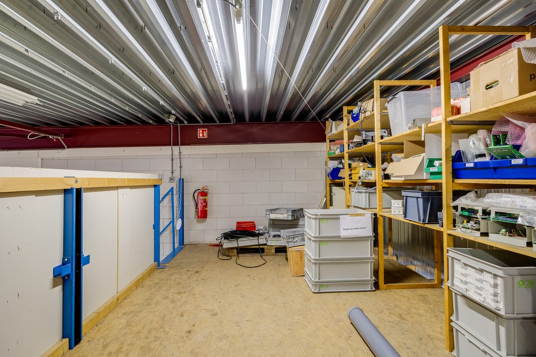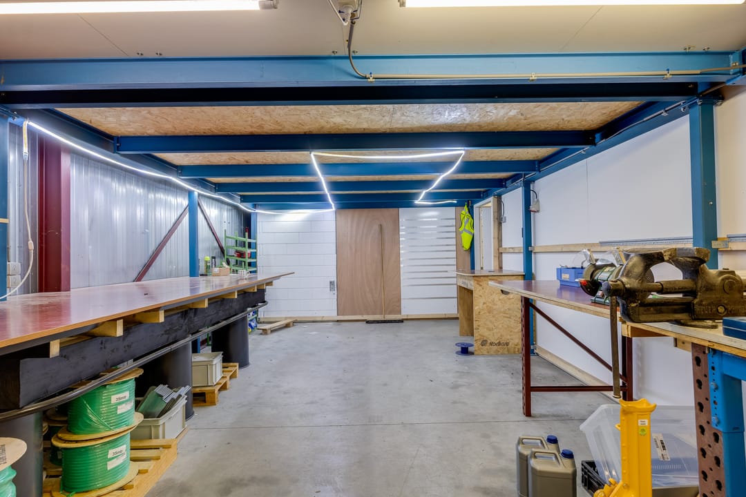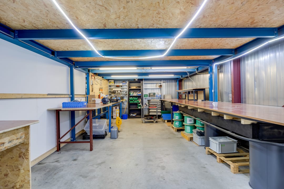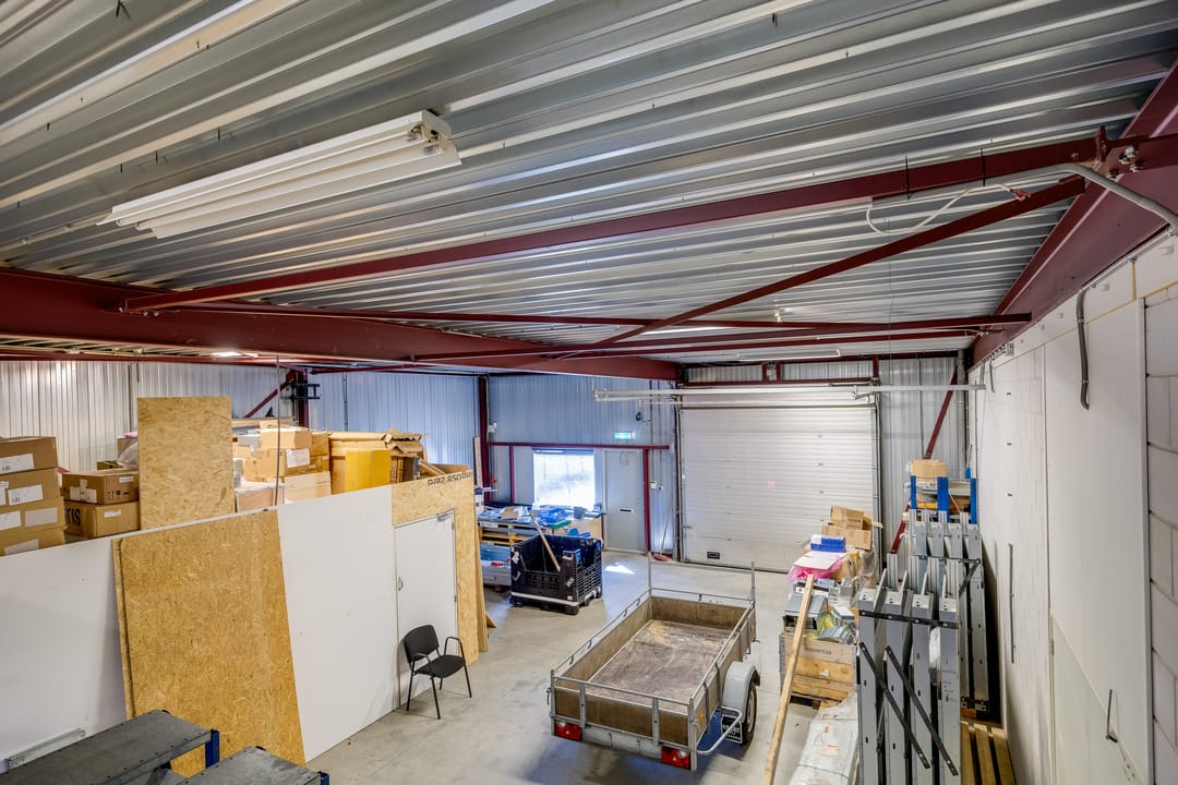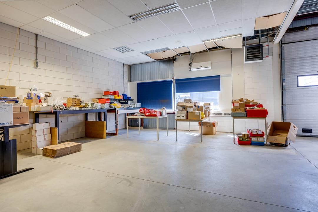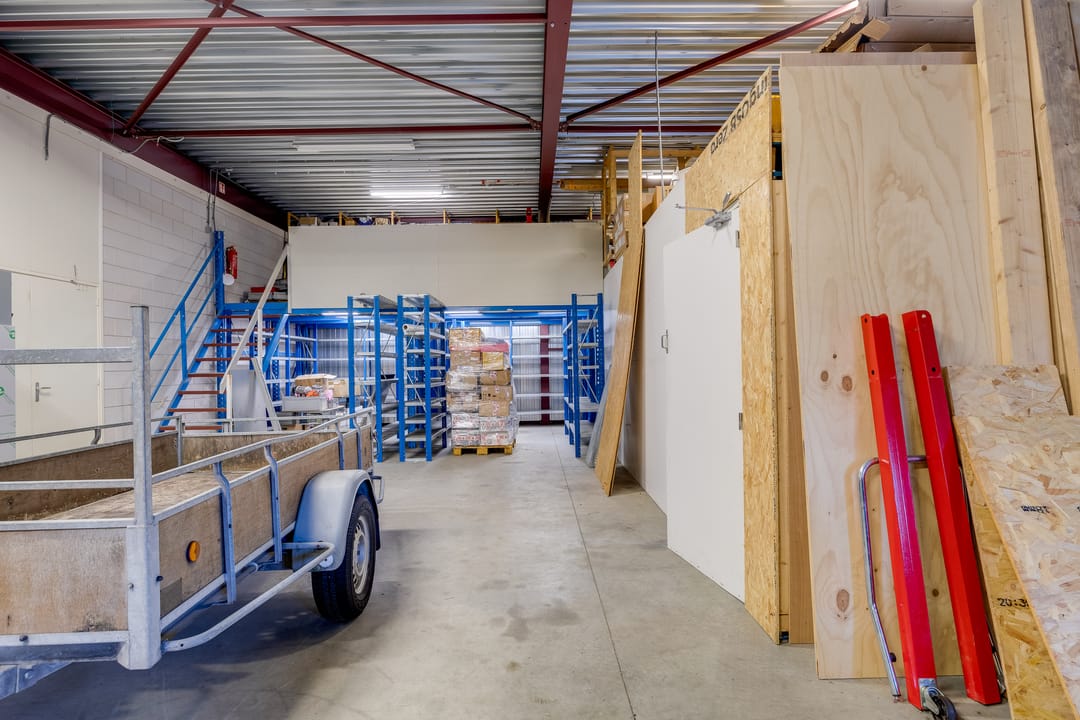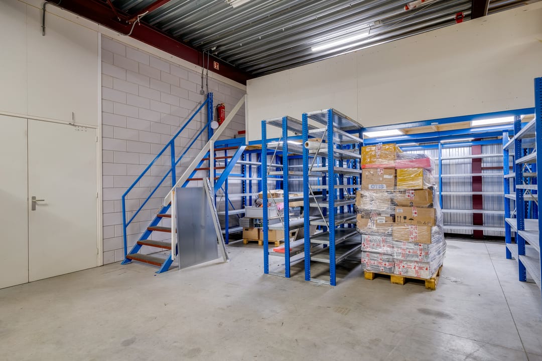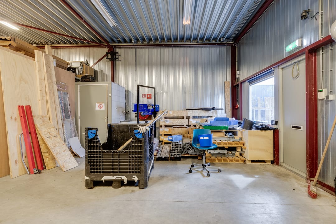 De bedrijfsruimte is voorzien van een betonvloer, twee overheaddeuren, meerdere loopdeuren, verlichting en elektrapunten. Verwarming is mogelijk middels een cv-installatie i.c.m. gasheaters. De entresolvloer aan de achterzijde van het pand is bereikbaar via een vaste trap. De bedrijfsruimte is uitstekend te gebruiken als opslagruimte of productie.
