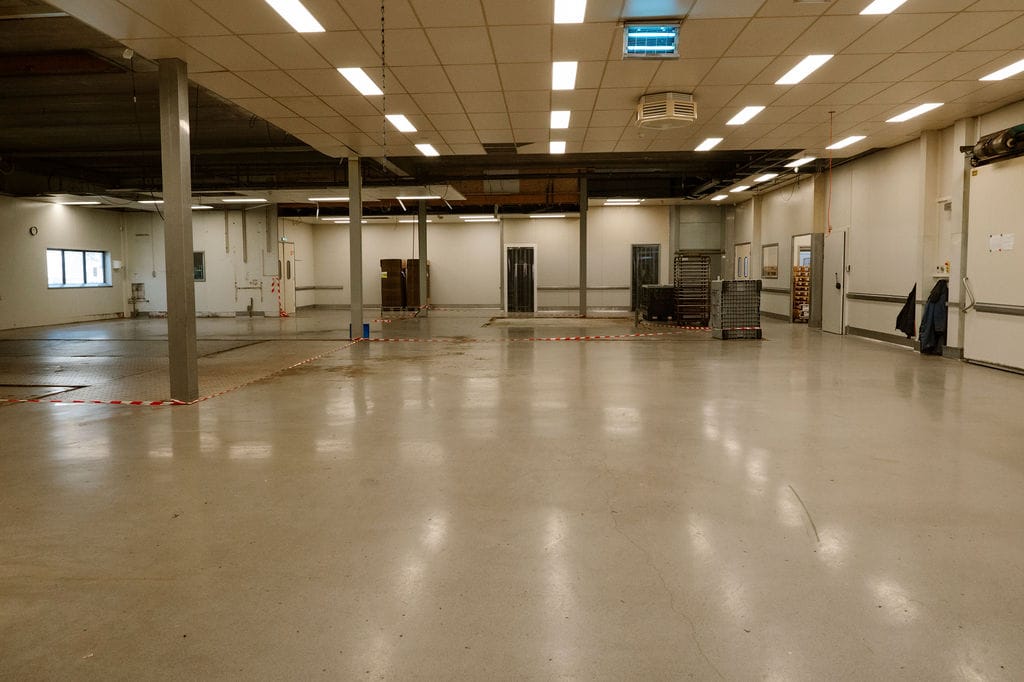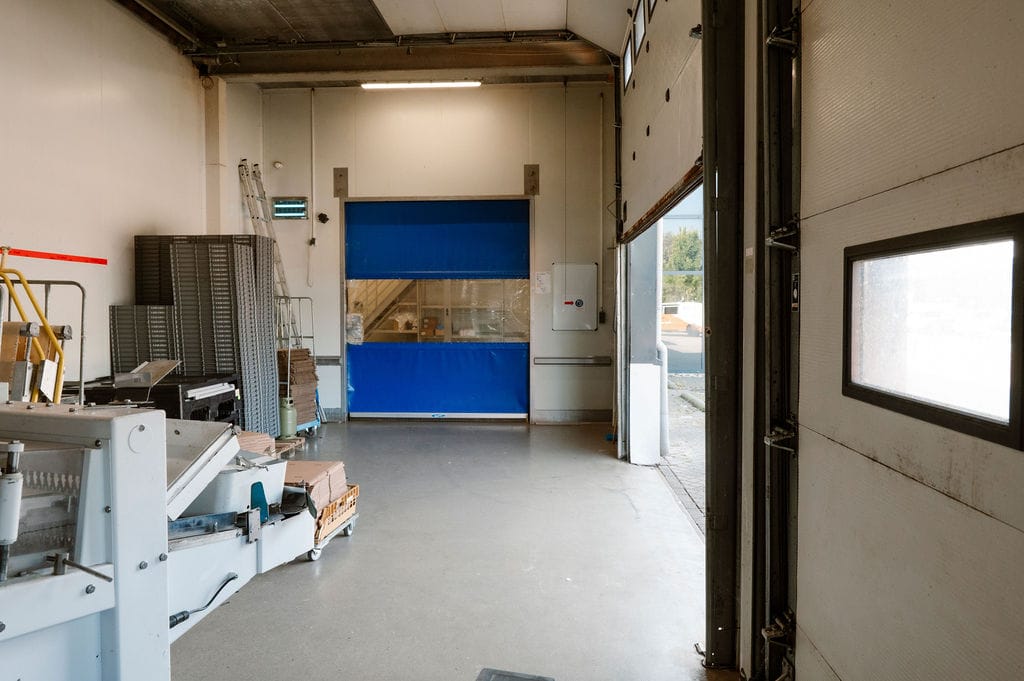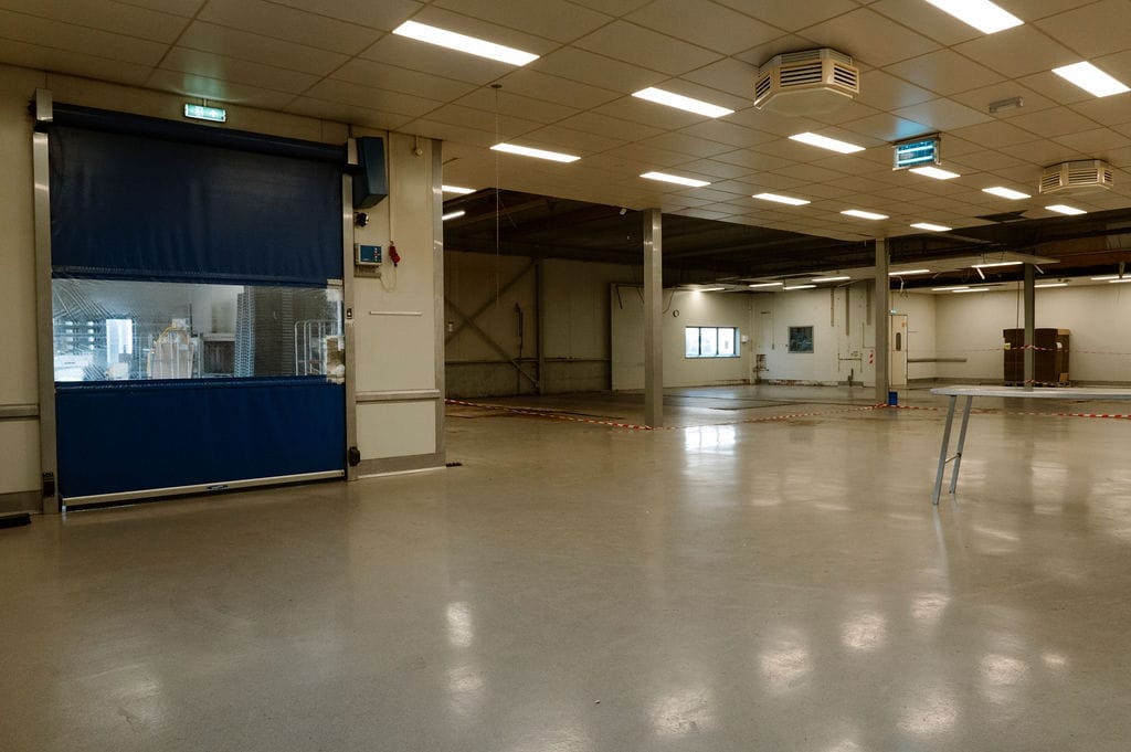 - Rooflights, overhead doors, three-phase electric power, concrete floor, toilet, pantry and built-in fittings