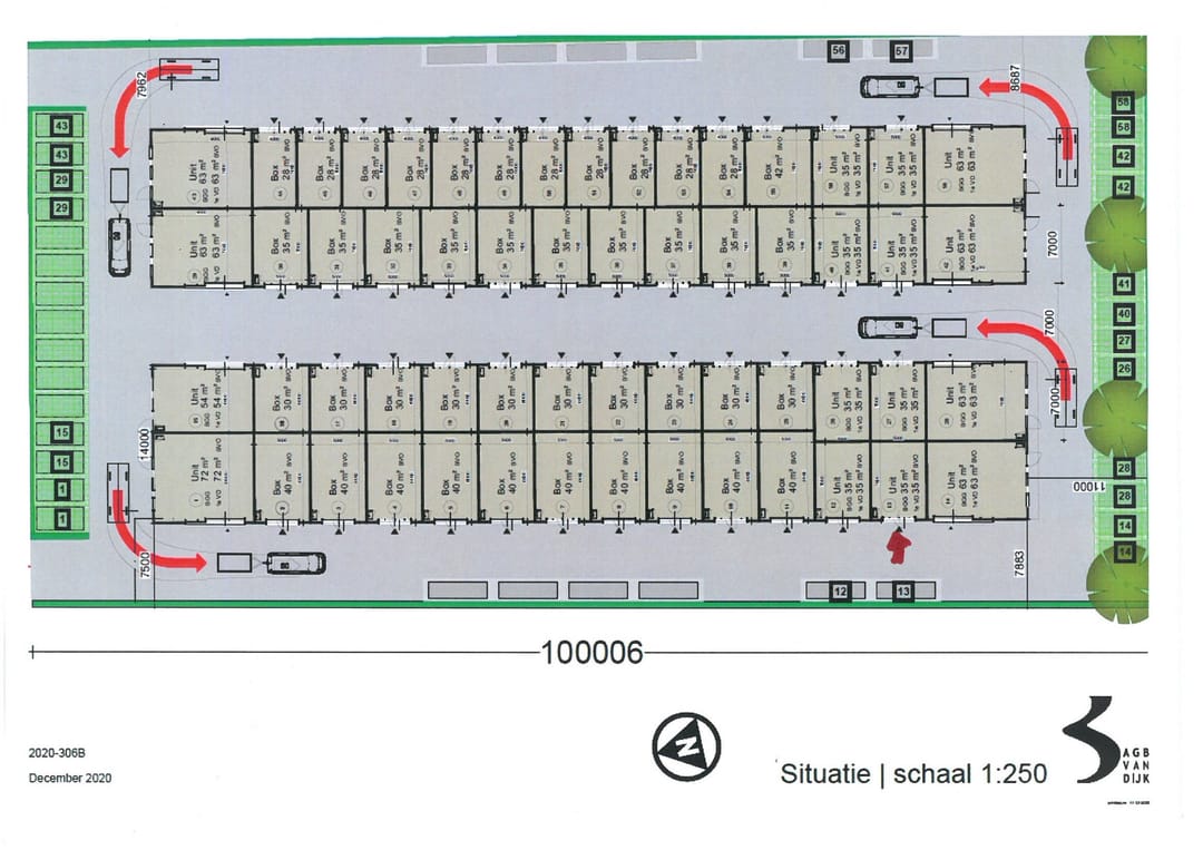 De aangeboden bedrijfsunit is begin 2022 opgeleverd met elektrische overheaddeur en beschikt over 1 eigen parkeerplaats.
