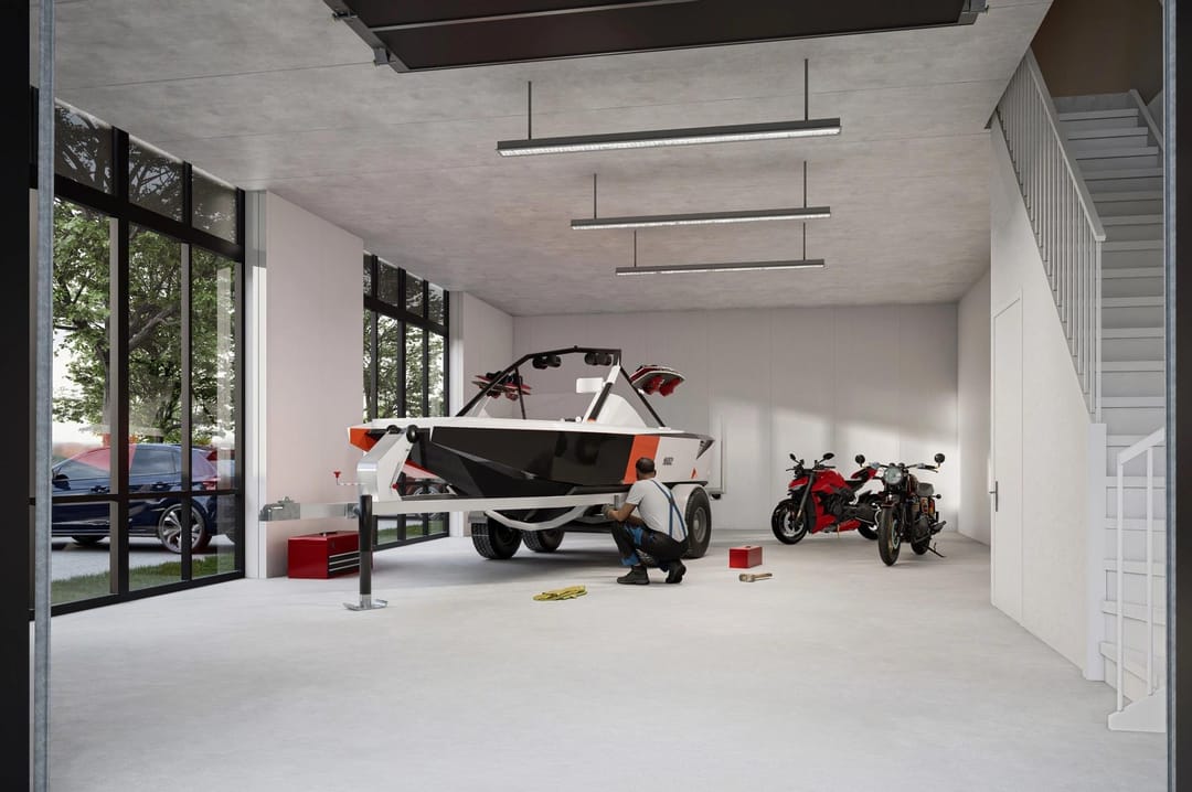 - Overhead doors and concrete floor