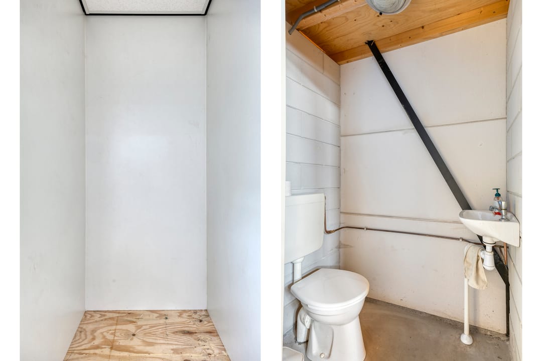 - Overhead doors, three-phase electric power, concrete floor, toilet, pantry and windows can be opened