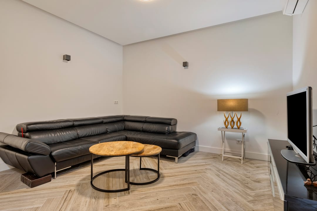 Aan de voorzijde van de woning is de ruime en sfeervolle woonkamer gelegen, voorzien van airconditioning. De woonkamer staat in open verbinding met de keuken en is tevens voorzien van LED verlichting in het verlaagd plafond. Diverse TV-en internetaansluitingen en aansluiting voor eventueel beeldscherm voor camerabeveiliging.
