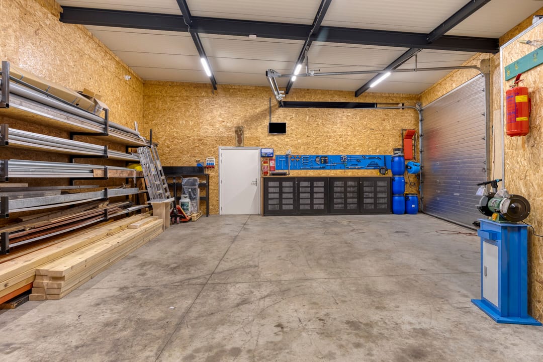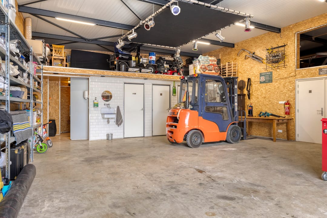 Deze bedrijfshal bestaat uit twee gedeeltes. Hal 1 is voorzien van een uitstortgootsteen, krachtstroom, alarminstallatie, groepenkast, camerasysteem, berging met aansluiting voor wasmachine, separaat toilet, betegelde doucheruimte, werkplaats, kantine met aanrecht met inbouwapparatuur en vliering. De bedrijfsruimte is toegankelijk middels een eigen elektrische sectionaaldeur met loopdeur alsmede een tweede sectionaaldeur aan de achterzijde.