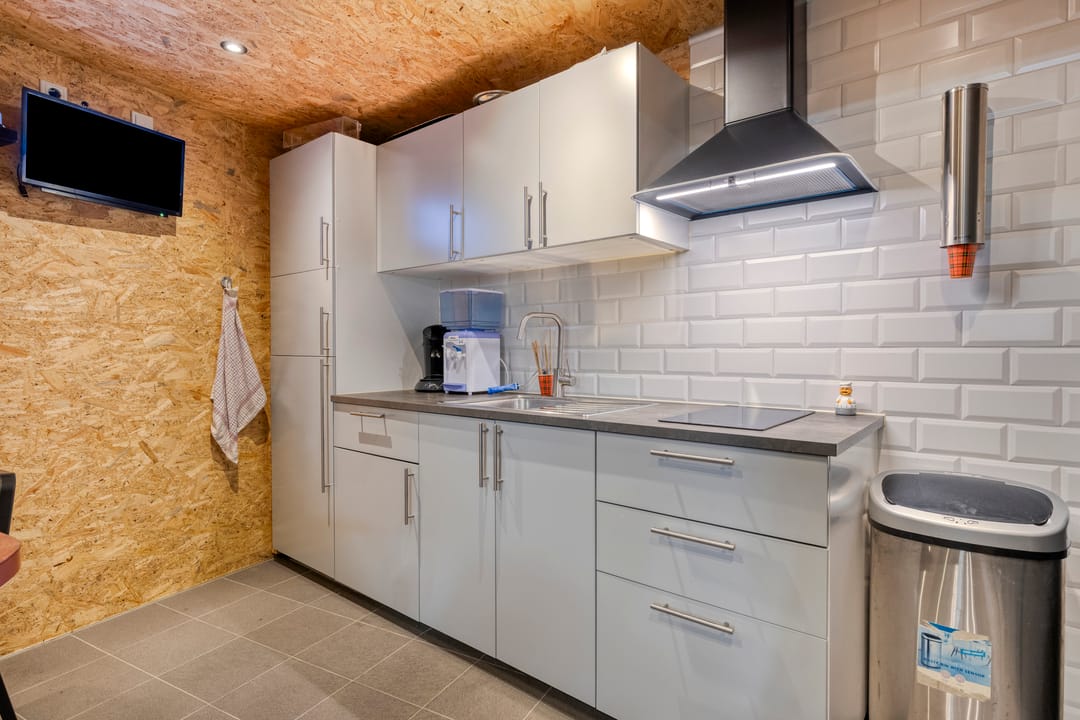 De hal is voorzien van een modern afwerkingsniveau er bevindt zich een ruime keukenopstelling voorzien van koelkast, 4 pits inductiekookplaat, afzuigkap en vaatwasser, verder voorzien van 2x solatubes, LED plafond en wandverlichting.