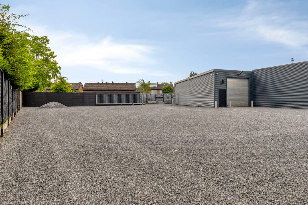 Het gehele terrein is voorzien van straatkolken, voor een goede afwatering en is voorzien van solide erfverharding bestaande uit overwegend grind en bestrating, voor de hallen ligt stablisé met grindmatten waarop een belasting mogelijk is van maar liefst 30.000 kg. Tevens is er een extra schuifpoort voor afsluiting van het achterste gedeelte van het terrein. Het gehele object is s’ nachts optimaal verlicht en deels voorzien van bewegingsmelders en daarnaast voorzien van hoogwaardig camerasysteem.