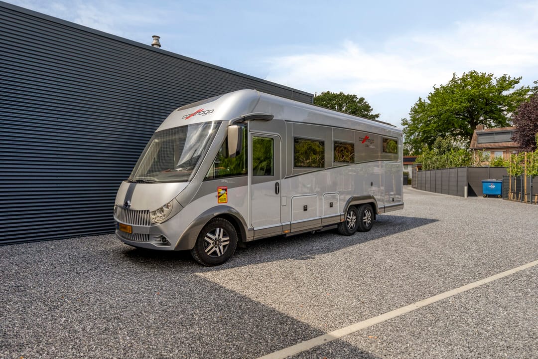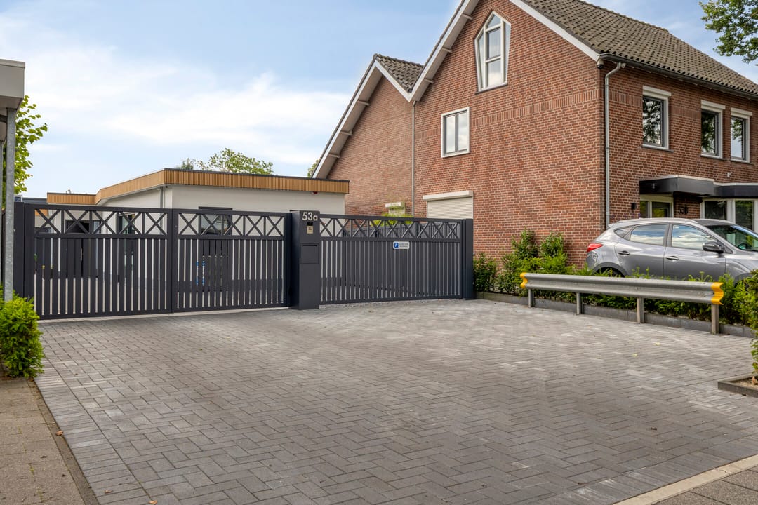 De royale oprit is voorzien van een moderne, automatische toegangspoort.