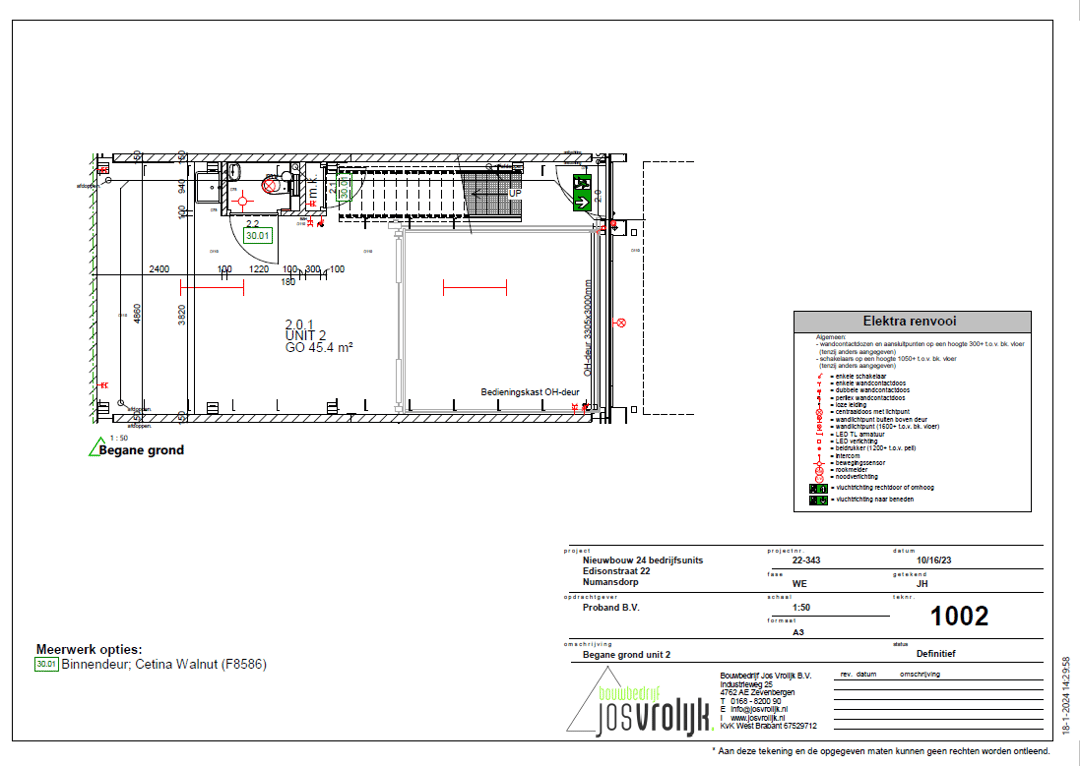 - eigen meterkast met aansluitingen voor water en elektra (3 x 25 Amp.) en voorbereiding voor later aan te sluiten laadpaal;