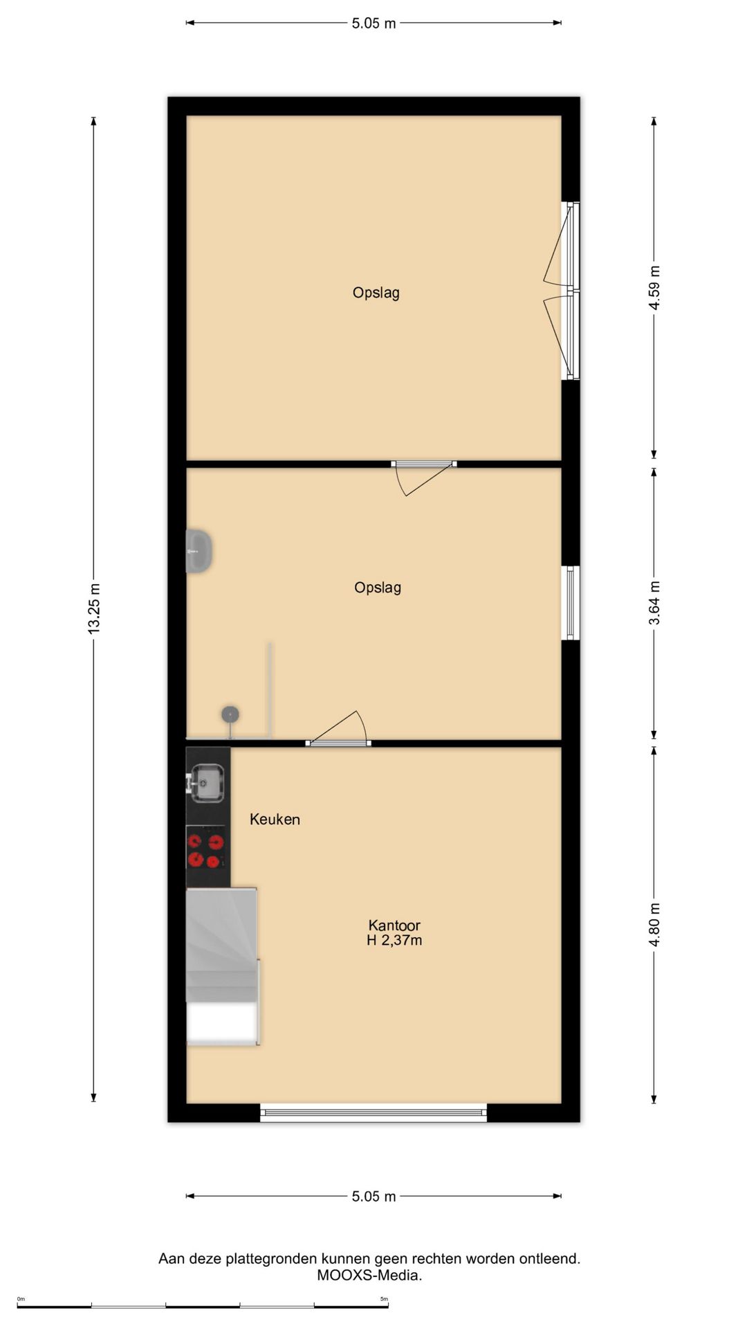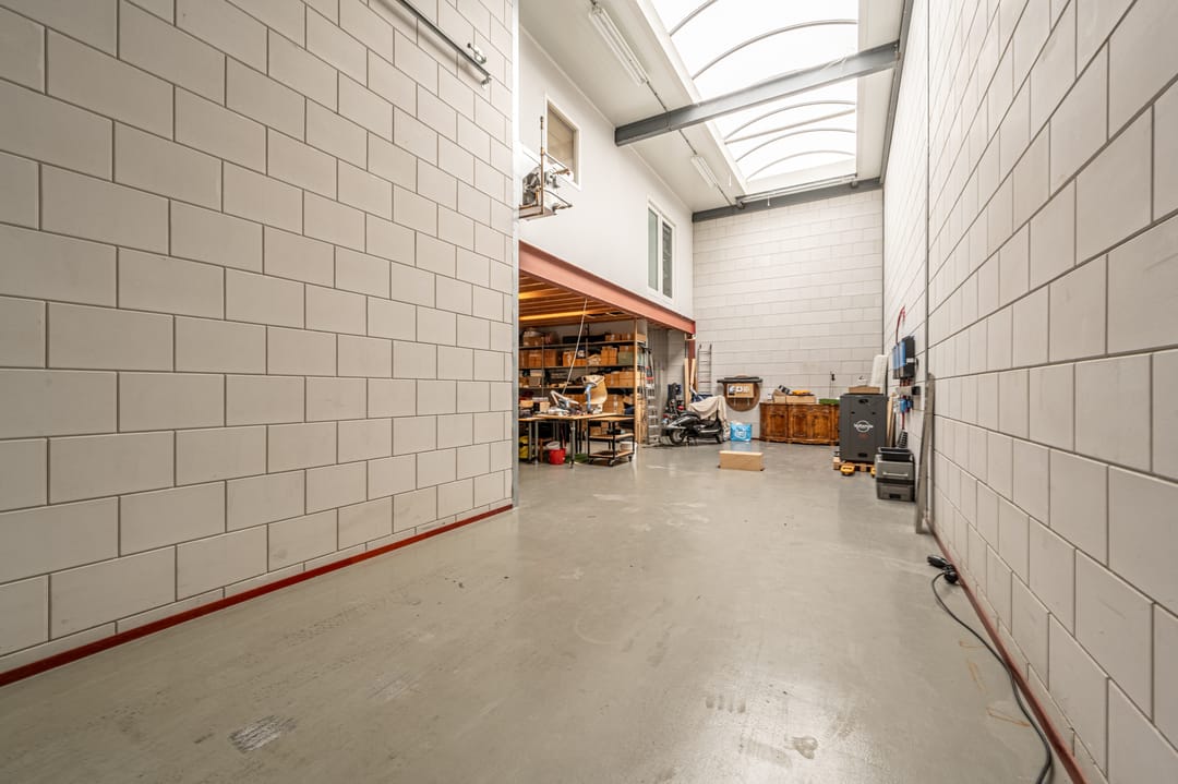 Deze ruimte heeft een houten vloer, TL-verlichting, beschikt over daglicht via een daklicht en is voorzien van een glazen pui met deur.