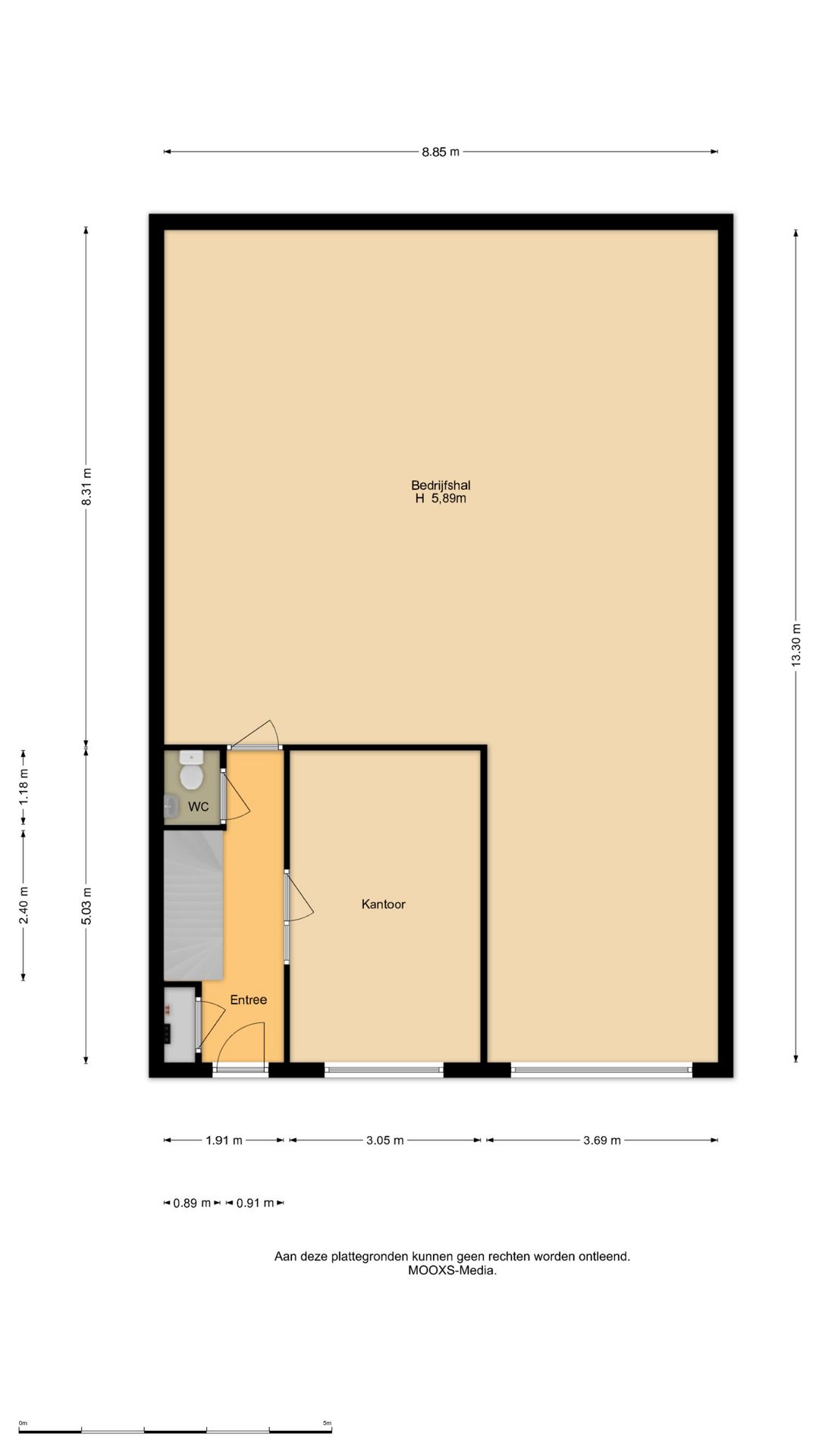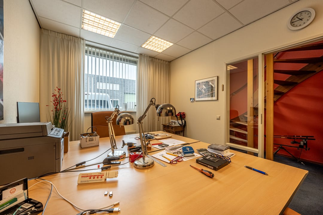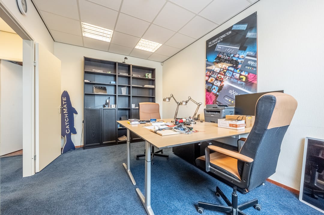 Vanuit de hal is tevens een separate kantoorruimte bereikbaar, gelegen aan de voorzijde van de unit.