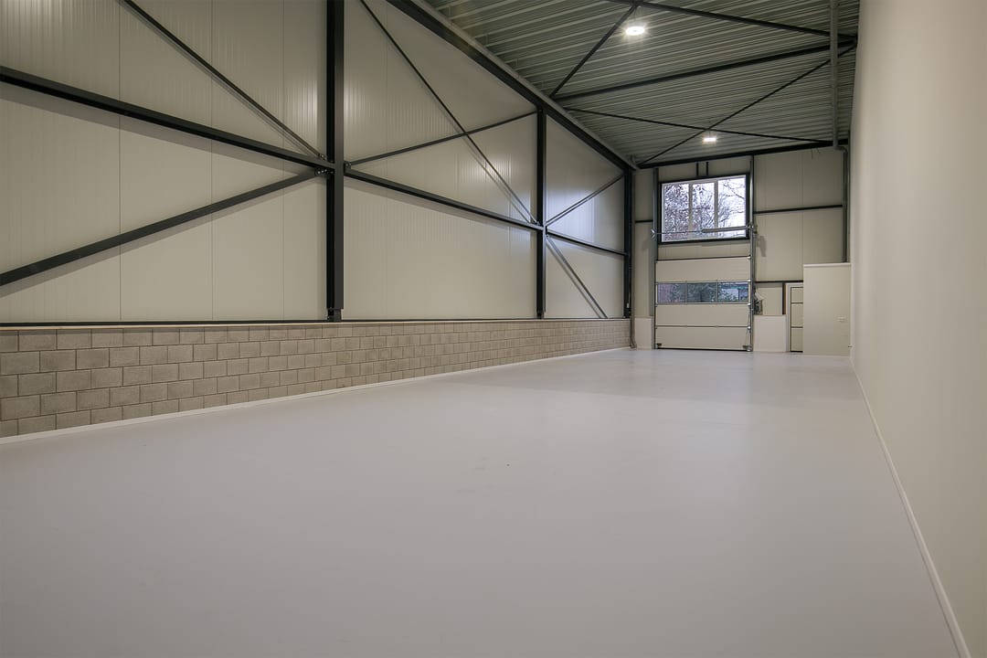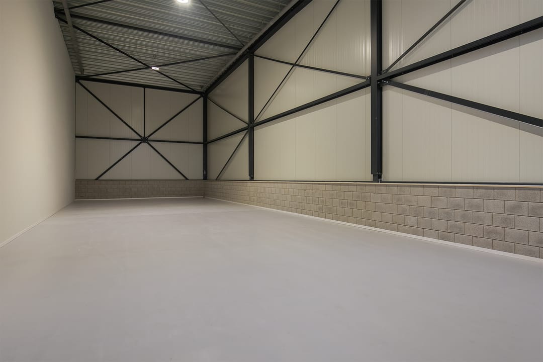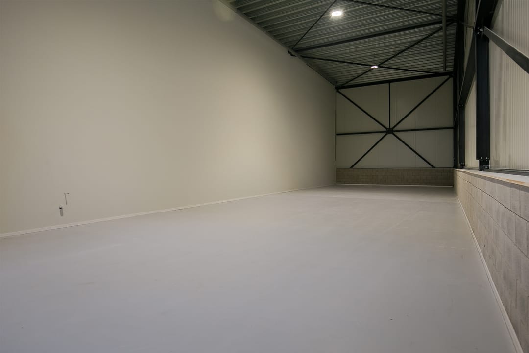 Dankzij de hoge plafonds is het mogelijk om er een verdiepingsvloer in aan te brengen, waarbij er zowel op de begane grond als op de (optionele) verdieping voldoende stahoogte is. Uiteraard biedt de bedrijfsunit ruimte aan groot materieel.