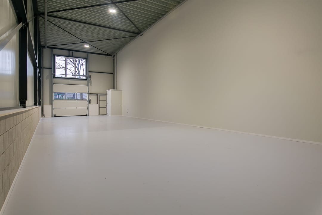 De bedrijfsunit is voorzien van een eigen entree, een separate loopdeur met groot bovenlicht, een royale overheaddeur voor eenvoudig laden en lossen, een betonvloer die zich goed leent voor opslag, stalling of andere doeleinden en een houten verdiepingsvloer.