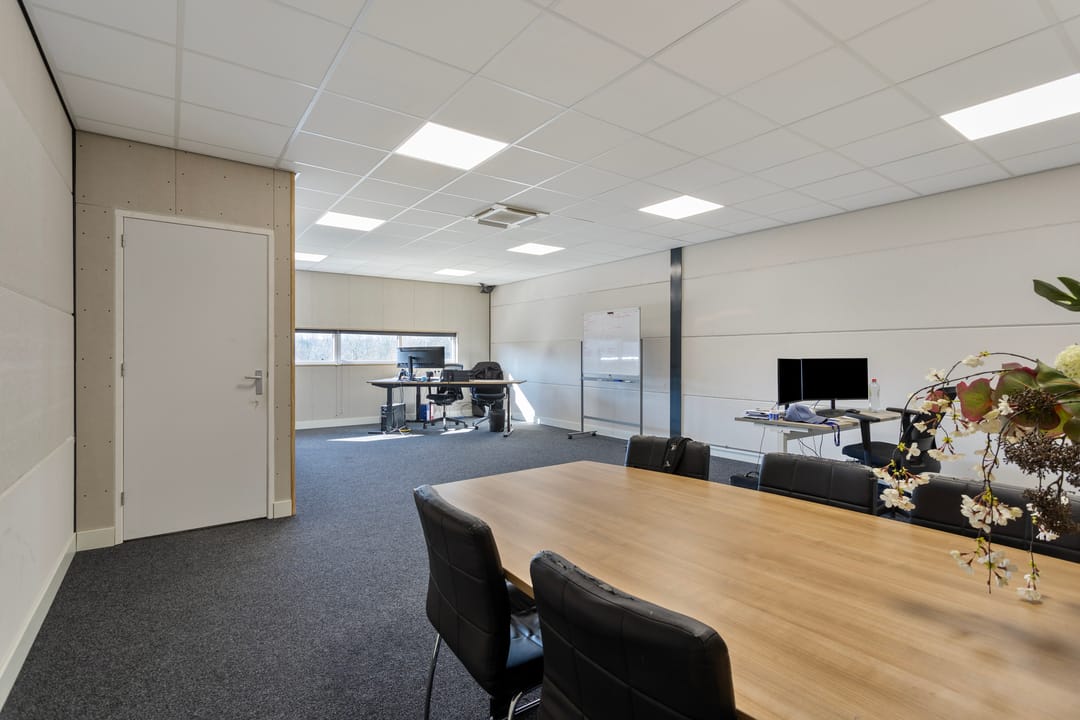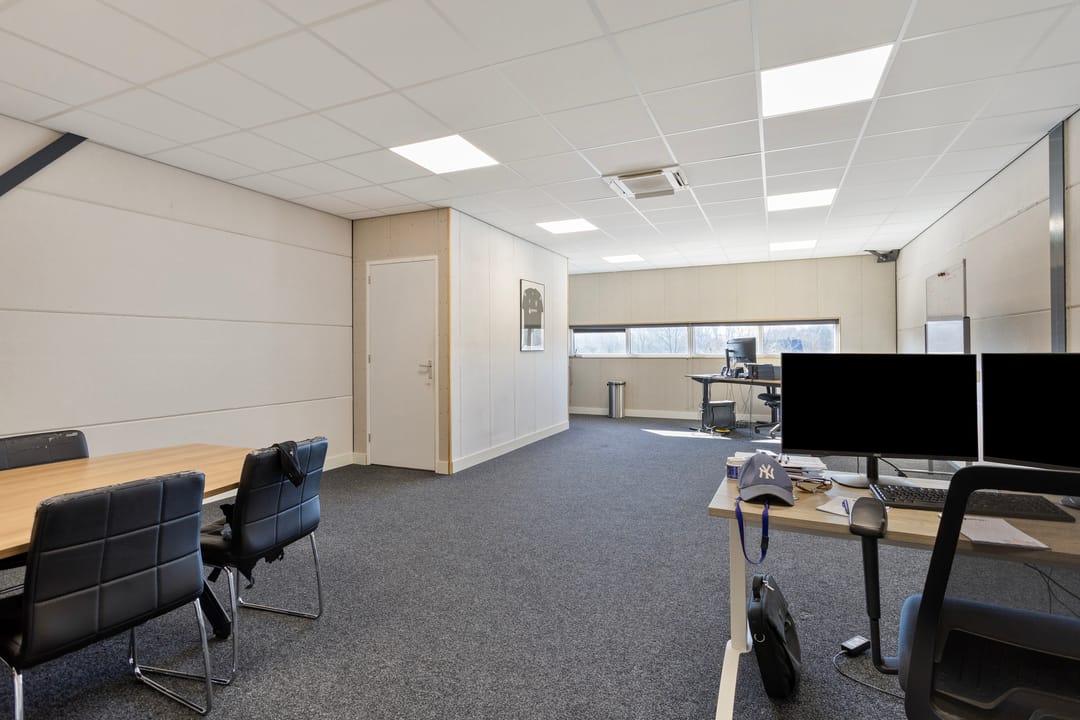 De bedrijfsruimte is voorzien van een elektrische overheaddeur, wat zorgt voor een goede bereikbaarheid voor laden en lossen. Daarnaast is de unit praktisch ingedeeld en uitgerust met een toilet en een pantry, wat het comfort voor dagelijks gebruik vergroot. Voor een aangenaam binnenklimaat is de ruimte voorzien van een airco-installatie, die zowel kan verwarmen als verkoelen.