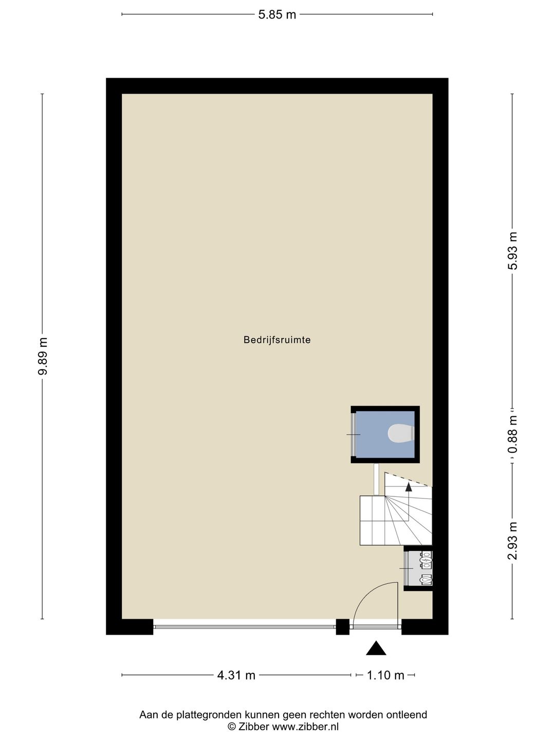 ca. 60 m² B.V.O. bedrijfsruimte gelegen op de begane grond;