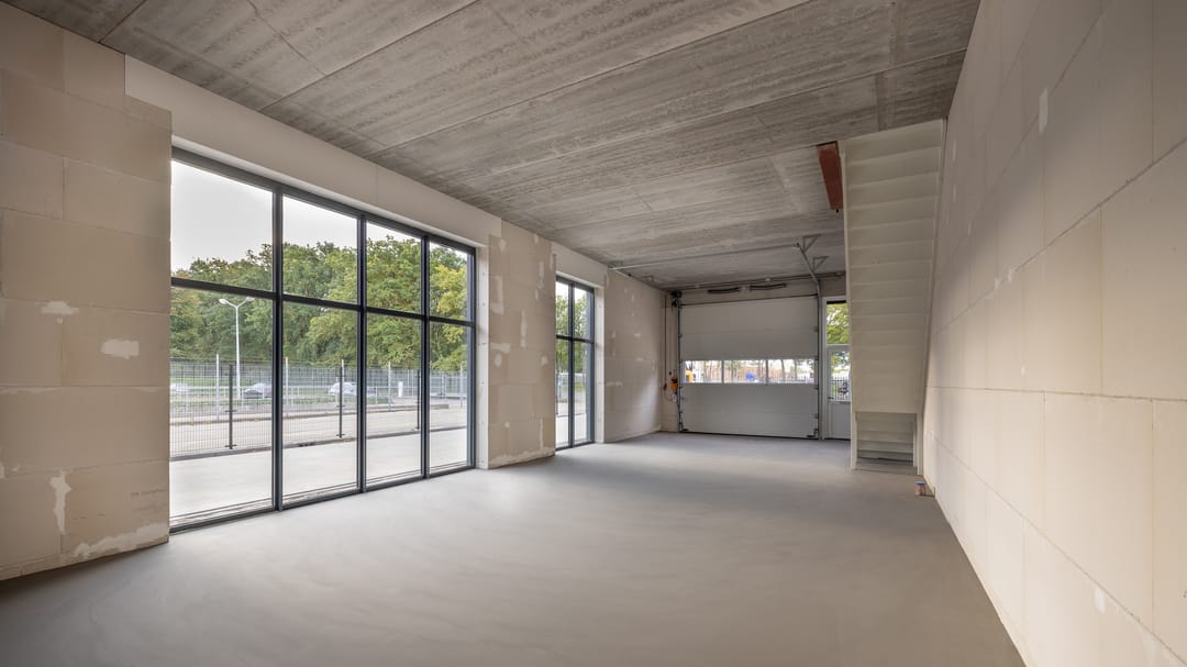 De unit wordt standaard afgewerkt met elektrische voorzieningen, toilet op de begane grond en een kantoorruimte op de verdieping, voorzien van pantry. De toekomstig huurder kan meedenken in afwerking van de unit.